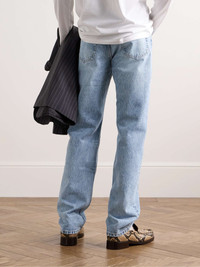 Our Legacy's 'First Cut' jeans are made from Italian denim in a faded light-blue wash called 'Vintage Chopper'. They're cut for a roomy fit and detailed with a translucent patch at the back that's subtly stamped with the brand name. Size & Fit - Fits true to size. Take your normal size - Regular-straight leg, mid-rise style - Mid-weight, non-stretchy fabric - Model is shown wearing an IT 48 - Model measures: waist size 30, height 6'0"/ 183cm Details & Care - Light-blue denim - Button fastenings - 100% cotton; pocket lining: 100% cotton - Machine wash - Designer wash: Vintage Chopper