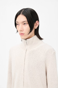 Details · Italian yarn · 100% Silk · Plain knit · Funnel neck · French shoulders · Ribbed cuffs and hem · Relaxed, straight fit · M2253FO Description Our Float Funnel in Oyster Cherub Silk. Produced in an Italian silk yarn, the mens plain knit Float Funnel has a relaxed, straight fit and features a funnel collar, a two way zip, French shoulders and ribbed detailing. This garment is manufactured using a carefully sourced yarn. The natural characteristics of the yarn, combined with the construction of the knit allows the garment to expand when worn. The garment shall be shaped by its wearer and naturally distress over time to finish the design process. To help keep the integrity of the garment please store the garment folded.