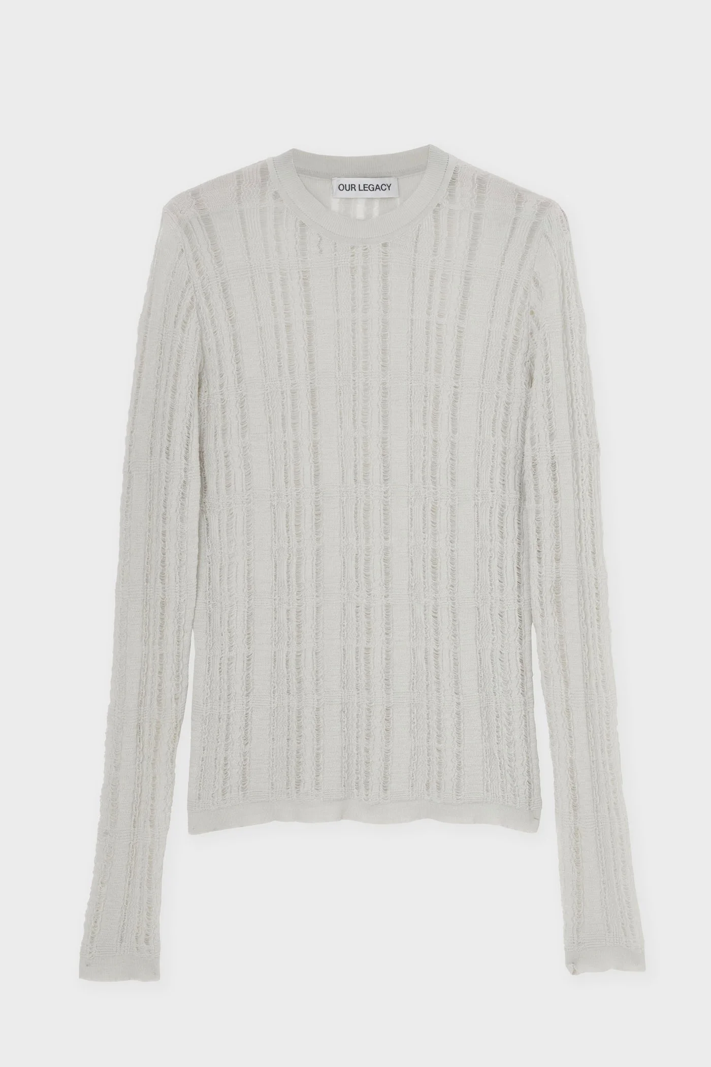 Details · Italian yarn · 78% Organic cotton 22% Polyamide · Sheer check knit · Ribbed collar, cuffs and hem · Relaxed, straight fit · M2253FL Description Our Formal Roundneck in Cloud Grey Tech Cotton Produced in an Italian organic cotton and polyamide blend yarn, the sheer check knit mens Formal Roundneck has a relaxed, straight fit and features ribbed collar, cuffs and hem. This garment is manufactured using a delicate material with a naturally loose construction. Please handle with care and wash according to washing instructions. Be especially careful with jewelry and other pointed objects that might harm the surface.