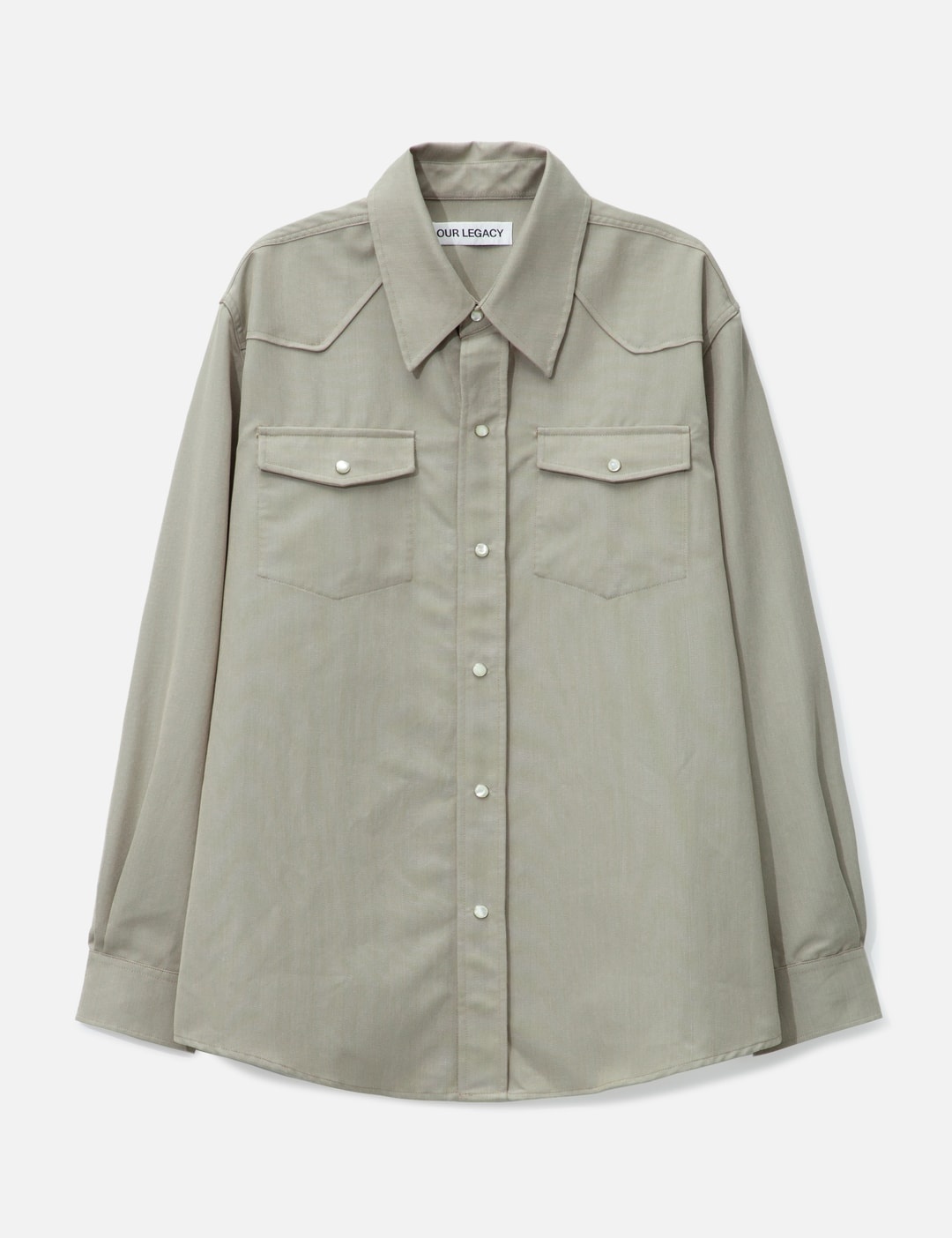 - Our Legacy - Frontier Shirt - Made with Italian technical suiting fabric - Two chest pockets - Button closure - Western shoulder yoke details - Straight hem - Color: Lucid Pistachio Rural Wool - Material: 80% Polyester 20% Viscose - See more Shirts and Clothing SIZING - Model wears size M - Model measures: Height 189cm, Chest 31.5"/80cm, Waist 27”/69cm, Hip 34.3’’/87cm