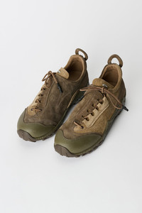 Details · Italian suede upper · Contrast panel construction · Polyurethane toe cap · Vibram sole · Asymmetrical lacing · Rounded leather laces · Rubber coated lace tips · Metal OUR LEGACY rivet on tongue · Oval heel pull · Generous fit · A2267GWO Description Our Gabe in Woodland Suede. Produced with an Italian suede upper and contrast panel construction, the Gabe features a polyurethane toe cap, Vibram sole, asymmetrical lacing with rounded leather laces and rubber coated tips, a metal OUR LEGACY rivet on the tongue and an oval heel pull.