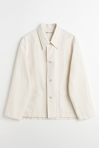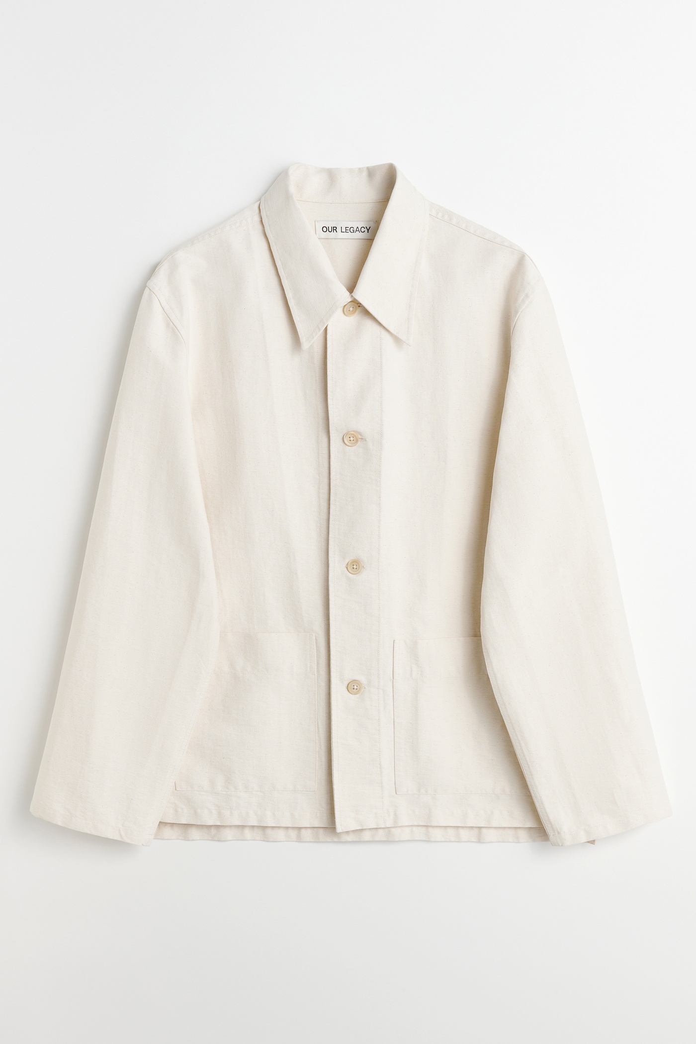 Details · Italian fabric · 94% Cotton 6% Polyamide · Wide placket · Mother of pearl buttons · Spread collar · Two patch pockets · Vented side seams · Relaxed, boxy fit · M2242HNR Description Our Haven Jacket in Natural Rustic Cotton Nylon. Produced in a Italian cotton and polyamide blend fabric, the mens Haven Jacket has a relaxed, unconstructed fit and features two front pockets, mother of pearl buttons and a spread collar.