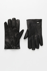 Details · Italian leather · 100% Lamb Leather · Our Legacy metal rivet · Twin needled top stitch · Elastic zig zag stitch · Wool lining · A4248HIB Description Our His Gloves in Black Leather. Produced in an Italian lamb's leather with a wool lining, the men's His Gloves feature a metal Our Legacy rivet, twin needled top stitch and an elastic zig zag stitch. This product is crafted from carefully sourced leather. As a natural material, leather carries subtle traces of the animal's life. These natural imperfections bring a unique character to each product, expressing an original and authentic look. The product shall be shaped by its wearer and naturally distress over time to complete the design process.