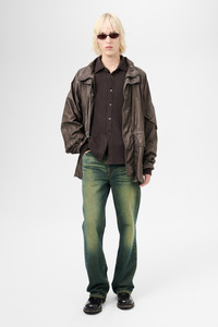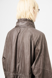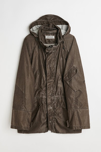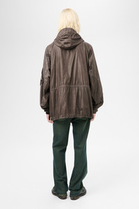 Details · Italian fabric · 96% Polyamide 4% Polyurethane · Washed finish · Funnel neck collar · Packable drawstring hood · Storm placket · Snap stud and hidden zip closure · Waist and hem drawstrings · Two front pockets · Adjustable cuffs · Patch pocket on sleeve · Patched elbows · Generous, boxy fit · M2251HAB Description Our Horizon Jacket in Brown Wash Out Nylon. Produced in a washed Italian polyamide and polyurethane blend fabric, the men's Horizon Jacket has a generous, boxy silhouette and features a funnel neck collar, a packable drawstring hood, two large waist pockets with button closure, patched elbows and drawstrings at the waist and hem. This garment is manufactured using carefully sourced material with a unique treatment process that will give each garment an individual shade and appearance. This technique could result in some color bleed onto lighter garments or surfaces. The garment shall be shaped by its wearer and naturally distress over time to finish the design process.