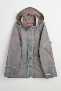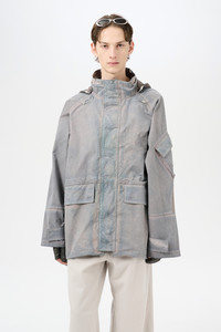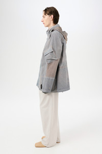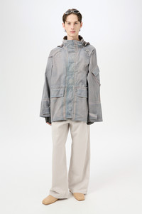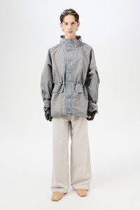 Details · Italian fabric · 100% Polyester · Overdyed with natural mineral pigments · Funnel neck collar · Packable drawstring hood · Storm placket · Snap stud and hidden zip closure · Waist and hem drawstrings · Two front pockets · Adjustable cuffs · Patch pocket on sleeve · Contrast patched elbows · Generous, boxy fit · M2251HCO Description Our Horizon Jacket in Carbon Overdye Papyrus Poly. Produced in a Italian polyester fabric which has been overdyed with natural mineral pigments, the men's Horizon Jacket has a generous, boxy silhouette and features a funnel neck collar, a packable drawstring hood, two large waist pockets with button closure, contrast patched elbows and drawstrings at the waist and hem. This garment has been carbon-treated by overdyeing with natural mineral pigments. This gives the garment a unique finish that will vary from piece to piece.