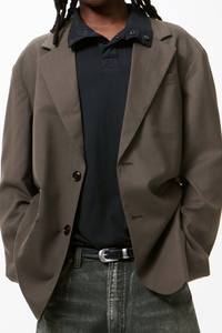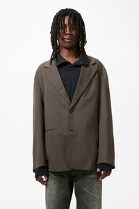 Details · Portuguese fabric · 100% Super Merino Wool · Viscose Cotton blend lining · Single breasted · Wide notched lapel · Double jetted pockets · Welt pocket · Centre back vent · Corozo buttons · Clean finishes · Generous fit · M2260ISG Description Our Industry Blazer in Storm Grey Merino Voile. Produced in a Portuguese super merino wool voile suiting fabric, the Industry Blazer has a generous single-breasted silhouette and features a wide notched lapel, clean finishing, double jetted pockets, a welt chest pocket and a centre back vent. This variant is fully lined to complement the ultra-fine wool and is finished with corozo buttons and a viscose cotton blend lining. This garment is manufactured using a fine and delicate material, carefully sourced for its particular characteristics. The garment shall be shaped by its wearer and naturally distress over time to finish the design process.
