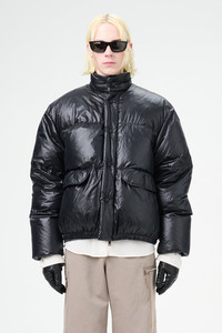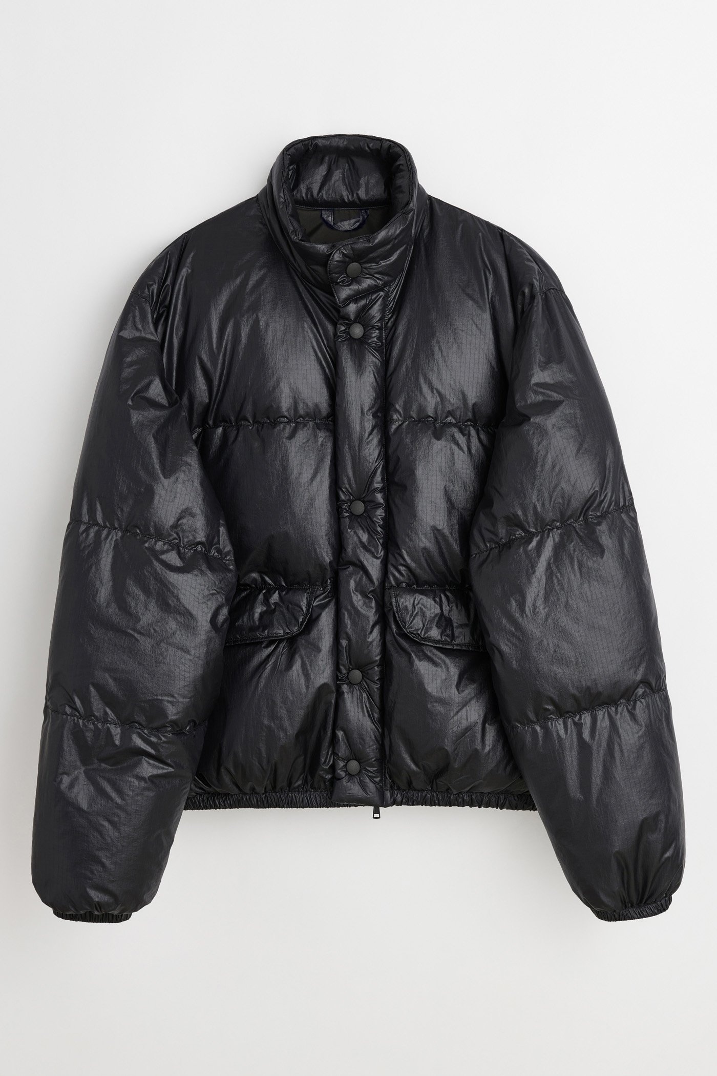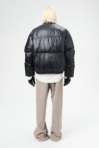 Details · Italian ripstop fabric · 100% Polyamide · Padded construction · 50% White Duck Down 50% Synthetic Hallofil · Funnel neck collar · Two hand warmer pockets · Sun Grip plastic snap studs · Two way Lampo zip · Inner pocket with zip closure · Elasticated cuffs and hem · Boxy fit · M4231IPB Description Our Inhale Puffa in Black Tech. Produced in an Italian polyamide ripstop fabric with a mix of down and synthetic insulation, the mens Inhale Puffa has a boxy fit and features a funnel neck collar, two hand warmer pockets with snap closure, an inner zip pocket and a two way lampo zip.