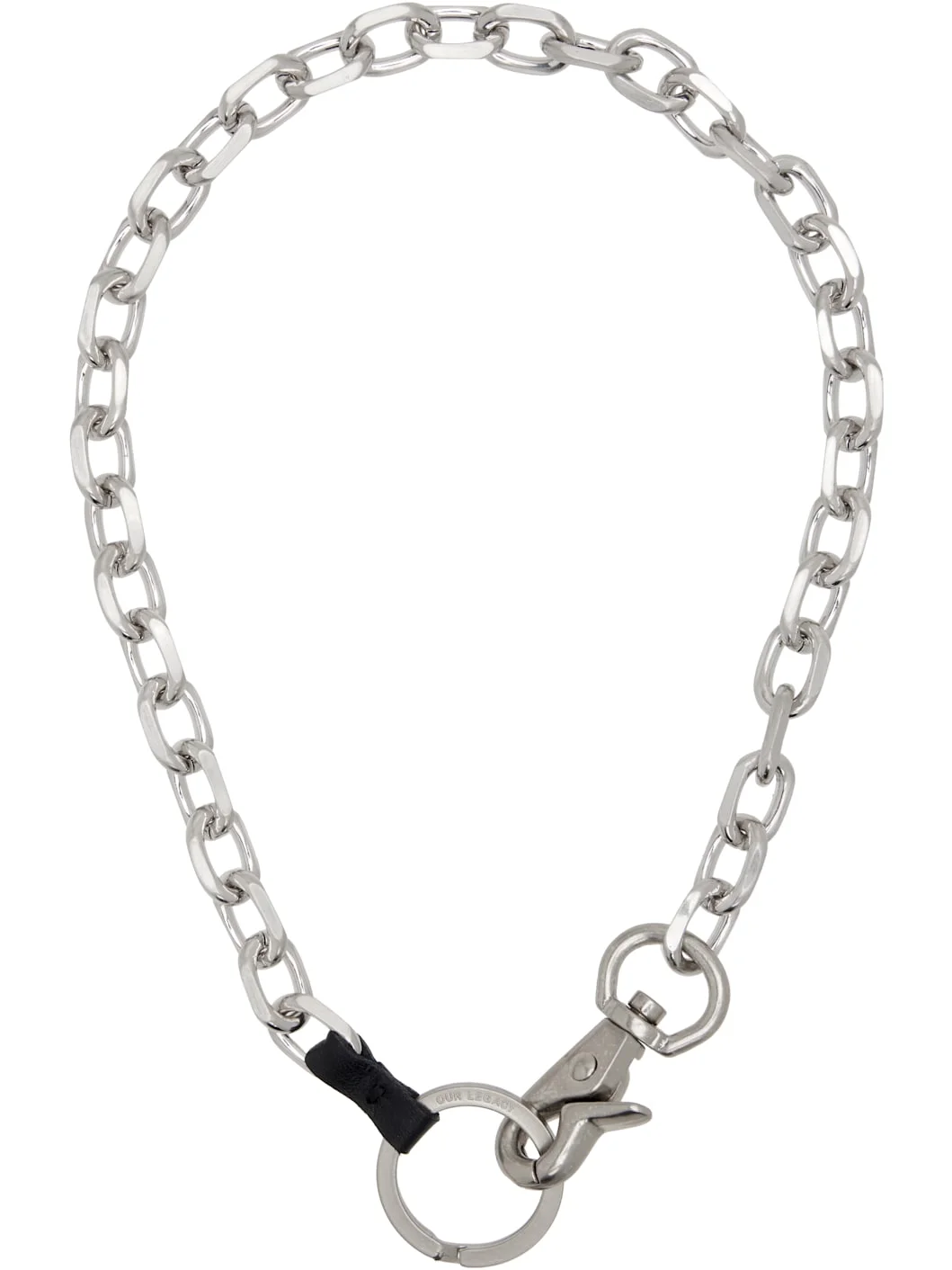 Cable chain necklace in silver-tone brass. · Hand-stitch leather link · Logo-engraved keyring · Lobster-clasp fastening · L19" Supplier color: Matte nickel Brass. Made in Portugal 261803M145005