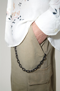 Details · Made in Italy · Key chain · Italian nickel plated brass chain · Varnished metal · Japanese trims · W-ring with engraved OUR LEGACY logo · Hand stitched leather tab · Supplied with ripstop dust bag · Comes in a presentation box · A4238LVB Description Our Ladon in Varnished Black Metal. Produced in Italy from an Italian nickel plated brass chain the Ladon key holder features a Japanese clasp and w-ring with an engraved Our Legacy logo. Supplied in a presentation box with a ripstop dust bag. Please note the Varnished metal coating will chip and fade with wear to reveal the brass color. Chain length: 42cm