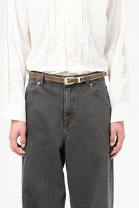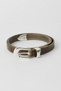 Details · Grau leather · Metal pin buckle closure · Metal tip · Single keeper · 20mm wide · Dust bag · A42482G Description Our 2 cm Belt in Grau Leather. Produced in a Grau colored cow leather, the belt is 2 cm wide and features a metal pin buckle closure, a metal keeper, a metal tip and a dust bag cover. The belt has a width of 2 cm and measures 80 cm, 90 cm or 100 cm from the end to the middle belt hole - including the buckle. This product is crafted from carefully sourced leather. As a natural material, leather carries subtle traces of the animal's life. These natural imperfections bring a unique character to each product, expressing an original and authentic look. The product shall be shaped by its wearer and naturally distress over time to complete the design process.