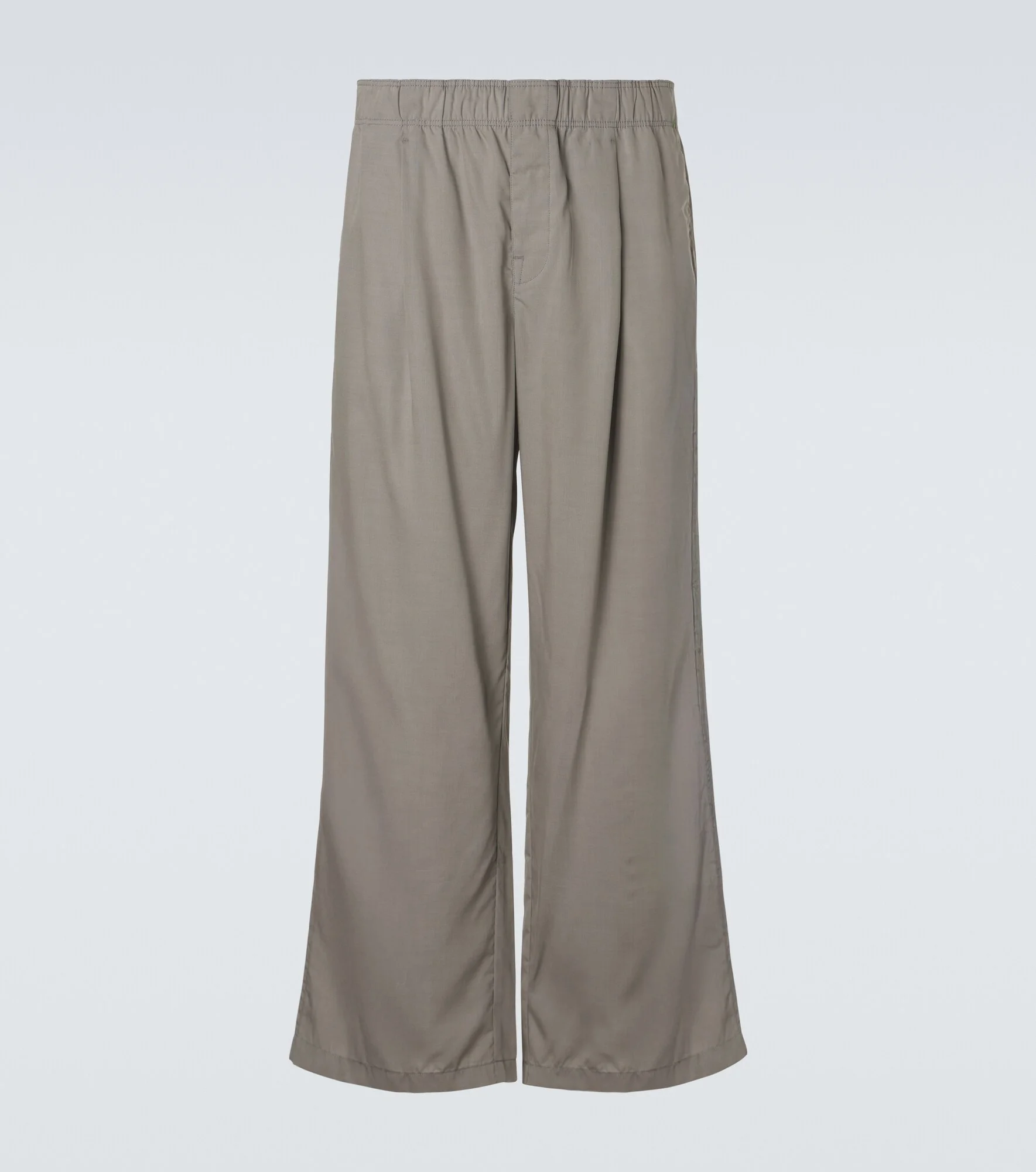 Our Legacy has achieved cult status for its Scandinavian-cool take on timeless silhouettes and custom-developed materials. Featuring a relaxed, wide-leg fit, the Leisure pants are designed with an elasticated waistband, a hidden button fly, and subtle front pleats. Product Details - Material: 77% viscose, 23% rayon - Care instructions: machine wash at 30 degrees - Made in Bulgaria - Color: grey - Designer color name: Willow Grey Softlow Tencel - Pocket lining: 100% cotton - Contains non-textile parts of animal origin - Closure: concealed button placket - Elasticated waistband - Pockets: side slit pockets, back pocket - Item number: P01176505 Size & Fit - True to size - Elasticated waist - Non-stretchy fabric - Wide-leg - Height of model is 189cm-74.5" and wears a size 50