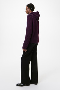 Details · English yarn · 100% Wool · Rib knit · Raglan sleeves · Two way zip · Patch pocket · Ribbed cuffs and hem · Straight hem · Relaxed boxy fit · M2263LN Description Our Level Hood in Night Violet Stripe Isles Wool. Produced in English wool yarn with a rib knit construction, the men's Level Hood has a relaxed boxy fit and features raglan sleeves, a two way zip, a patch pocket, ribbed cuffs and a straight hem. This garment is manufactured using a carefully sourced yarn. The natural characteristics of the yarn, combined with the construction of the knit allows the garment to expand when worn. The garment shall be shaped by its wearer and naturally distress over time to finish the design process. To help keep the integrity of the garment please store the garment folded.