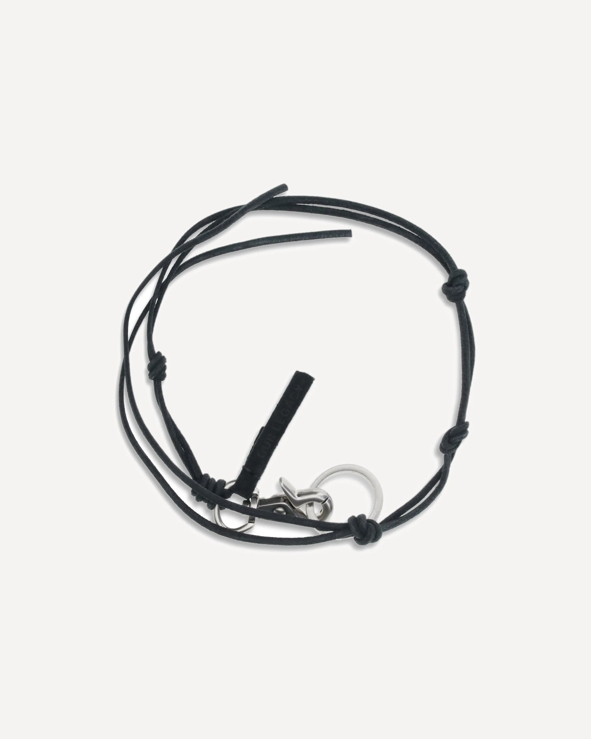 The Necklace crafted from grained leather cord, featuring knotted detailing throughout the length. It includes a logo-engraved key ring and a hand-stitched leather tab positioned near the lobster-clasp fastening. Silver-tone hardware completes the design. DETAILS - Sku: A2208LBL_BLACK - Season: SS26 - Composition: GENERAL 100% Calf Leather Bos Taurus - MADE IN PORTUGAL