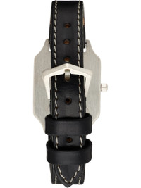 Buffed leather bracelet in black. · Solid sterling silver graphic at face · Pin-buckle fastening · L9" Supplier color: Sterling silver/Black strap Leather, 925 sterling silver. Made in Portugal 261803M165000
