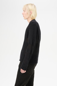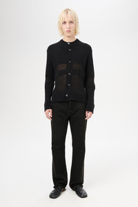 Details · Italian yarn · 45% Mako Cotton 28% Baby alpaca 27% Merino wool · Fine ribbed knit · Sparse knit sections · Mother of pearl buttons · Ribbed cuffs and hem · Relaxed, straight fit · M2253OL Description Our Opa Cardigan in Licorice Misty Alpaca. Produced in a soft Italian mako cotton, alpaca and merino wool blend yarn, the mens Opa Cardigan has a relaxed straight fit, and features mother of pearl buttons, sparse knit sections and ribbed cuffs and hem. This garment is manufactured using a carefully sourced yarn. The natural characteristics of the yarn, combined with the construction of the knit allows the garment to expand when worn. The garment shall be shaped by its wearer and naturally distress over time to finish the design process. To help keep the integrity of the garment please store the garment folded.