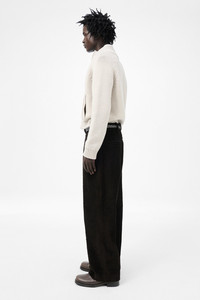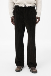 Details · Italian fabric · 100% Cotton · Heavy corduroy · Two side pockets · Two back welt pockets · Horn buttons · YKK zip fly · Covered hook-and-eye waistband fastening · Wide legged relaxed fit · M4254BP Description Our Borrowed Chino in Profound Brown Mammoth Cord. Produced in a heavy corduroy Italian cotton fabric, the men's Borrowed Chino has a wide legged relaxed fit and features two side pockets, two back welt pockets, horn buttons, a YKK zip fly and covered hook-and-eye waistband fastening.