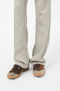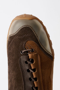 Details · Leather and suede upper · Contrast panel construction · Polyurethane toe cap · Vibram sole · Asymmetrical lacing · Rounded leather laces · Rubber coated lace tips · Metal OUR LEGACY rivet on tongue · Oval heel pull · Generous fit · A4257GBC Description Our Gabe shoe in Bitter Cocoa Mowed Suede. Produced in cow leather, Gabe features a leather and suede upper with contrast panel construction, a polyurethane toe cap and Vibram sole. The shoe has a generous fit and features asymmetrical lacing with rounded leather laces and rubber coated lace tips, a metal OUR LEGACY rivet on the tongue and an oval heel pull. This product is crafted from carefully sourced leather. As a natural material, leather carries subtle traces of the animal's life. These natural imperfections bring a unique character to each product, expressing an original and authentic look. The product shall be shaped by its wearer and naturally distress over time to complete the design process.