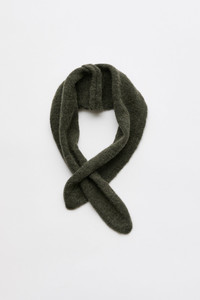 Details · Italian yarn · 55% Alpaca 15% RWS Wool · 22% Recycled Polyamide 8% Polyamide · Delicate fabric · Integrated knitted opening · Our Legacy tab logo · A4258MM Description Our Miniature Scarf in Moss Green Fuzzy Alpaca. Produced in a fine Italian alpaca, wool and polyamide blend yarn, the Miniature Scarf features an integrated knitted opening for looping through itself, full needle edge finishing and a centre seam with the Our Legacy tab logo. This garment is manufactured using a carefully sourced yarn. The natural characteristics of the yarn, combined with the construction of the knit allows the garment to expand when worn. The garment shall be shaped by its wearer and naturally distress over time to finish the design process. The Miniature Scarf measures to 70 x 18 cm
