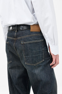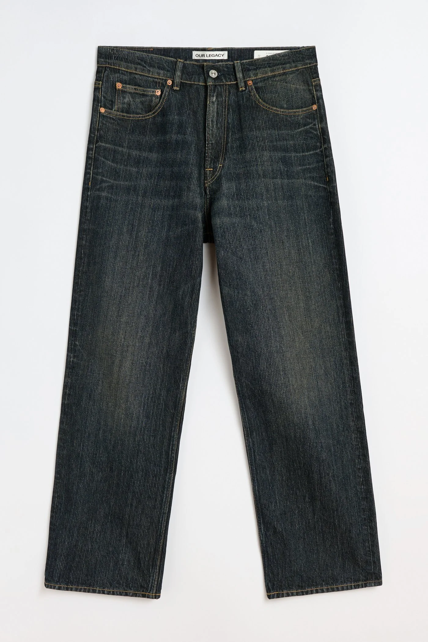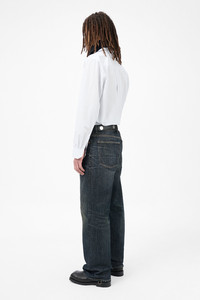 Details · Italian denim · 100% Cotton · Chain twill fabric · Clay-tinted wash treatment · Relaxed fit · Wide straight leg · YKK zip fly · Metal rivets · Five pockets · Reinforced back pockets · OUR LEGACY embossed patch · M4255TC Description Our Third Cut in Clay Tint Chain Twill. Produced in a cotton chain twill on an indigo base, this piece has been expertly worn and washed to achieve an authentic clay-worked patina. The ashy, muted tones and textured surface are the result of meticulous hand-crafted distressing and fading techniques, creating unique characteristics that reflect a natural, lived-in aesthetic. Each piece features distinct variations due to the artisanal washing process, making every garment one of a kind. This garment is manufactured using carefully sourced material with a unique treatment process that will give each garment an individual shade and appearance. This technique could result in some color bleed onto lighter garments or surfaces. The garment shall be shaped by its wearer and naturally distress over time to finish the design process.