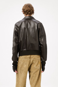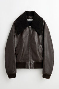 Details · Turkish calfskin leather · Fully lined · Detachable shearling collar · Lampo two-way zip · Welt pockets · Ribbed cuffs and hem · Inside welt pocket · Metal OUR LEGACY bean rivet · Sleek, shaped fit · M4259PU Description Our Pharos Bomber in Umber Brown Fluid Calfskin is produced in Turkish calfskin leather. The men's Pharos Bomber has a sleek and shaped fit and features a detachable shearling collar that attaches to the inner collar stand, a cotton and viscose lining, ribbed cuffs and hem, a welt pocket on the inside placket and two front welt pockets with hidden snap closure. This product is crafted from carefully sourced leather. As a natural material, leather carries subtle traces of the animal's life. These natural imperfections bring a unique character to each product, expressing an original and authentic look. The product shall be shaped by its wearer and naturally become distressed over time to complete the design process.