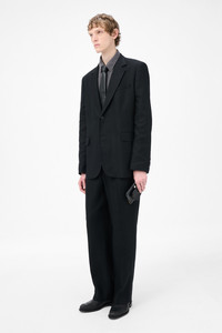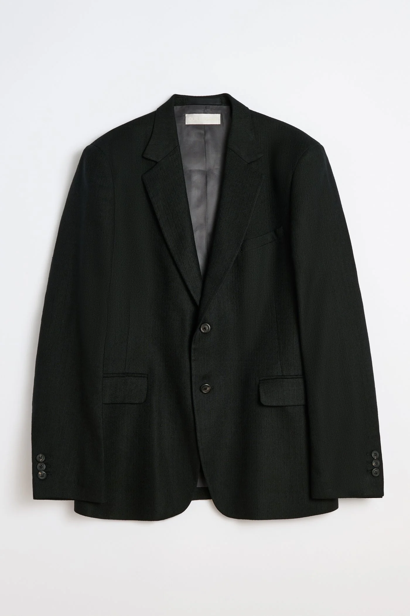 Details · Italian fabric · 51% Viscose 49% Cotton · Notched lapel · Constructed, padded shoulders · Angled welt chest pocket · Horn buttons closure · Two jet pockets · Darted for shape · Vented cuffs · Fully lined · Vent at back · Sharp, tailored fit · M4250CC Description Our Ceremony Blazer in Coal Black Link Stripe Weave. Produced in an Italian viscose and cotton blend fabric, the men's Ceremony Blazer has a sharp, tailored fit and features a single-breasted design with two button fastening, notched lapel, constructed padded shoulders, an angled welt chest pocket, two jet pockets, horn button closure, vented cuffs and is fully lined with a back vent.
