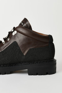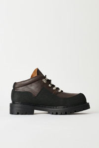 Details · Italian leather · Kevlar rand · Metal eyelets and speed hooks · Vibram lugged sole · Padded cuff · Mid-height shaft · Hiking boot inspiration · A4257QM Description Our Quest Boot in Maduro Brown Cattle Hide. Produced in Italian leather, the Quest Boot draws inspiration from traditional hiking boots and features a mid-height shaft with an angled and padded opening that sits comfortably around the ankle. The boot includes Kevlar reinforcement around the full base of the foot, metal eyelets and speed hooks, a Vibram lugged sole, and padded cuff construction. This product is crafted from carefully sourced leather. As a natural material, leather carries subtle traces of the animal's life. These natural imperfections bring a unique character to each product, expressing an original and authentic look. The product shall be shaped by its wearer and naturally distress over time to complete the design process.