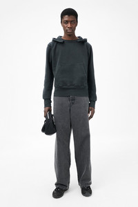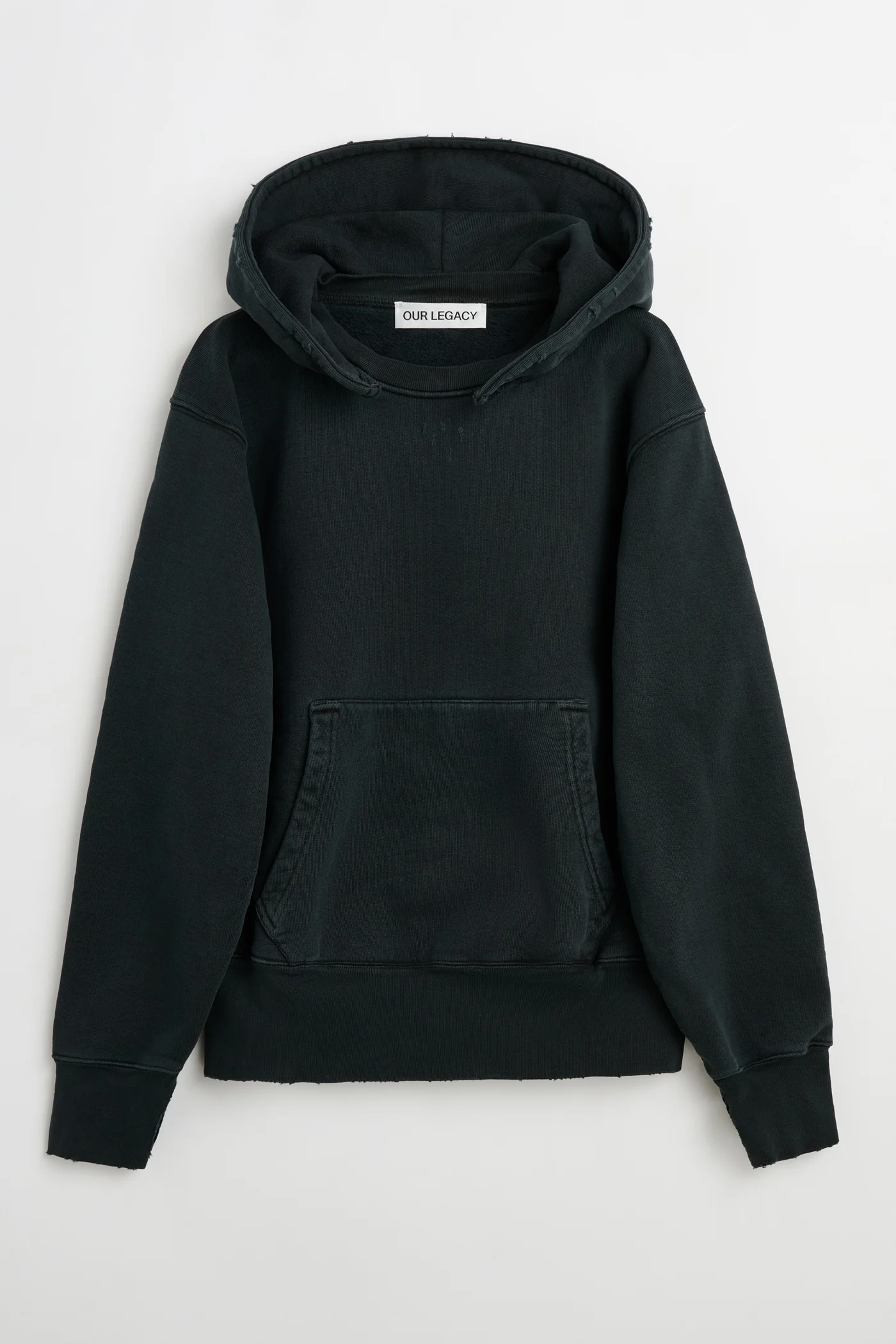 Details · Portuguese fabric · 100% Organic Cotton · Piece dyed · Distressed details · Wide ribbed neckline · Open hood with raw edges · Ribbed hem and cuffs · Distressed thumb openings · Kangaroo pocket · Boxy fit · M2256RPB Description Our Relic Hood in Pigment Black Hefty Fleece. Produced in a Portuguese organic cotton jersey, the mens Relic Hood has a boxy, straight cut and features a cut open hood with raw edges, a ribbed neckline, cuffs and hem, kangaroo pocket, distressed details and thumb openings. This garment is manufactured using carefully sourced material with a unique treatment process that will give each garment an individual shade and appearance. This technique could result in some color bleed onto lighter garments or surfaces. The garment shall be shaped by its wearer and naturally distress over time to finish the design process.