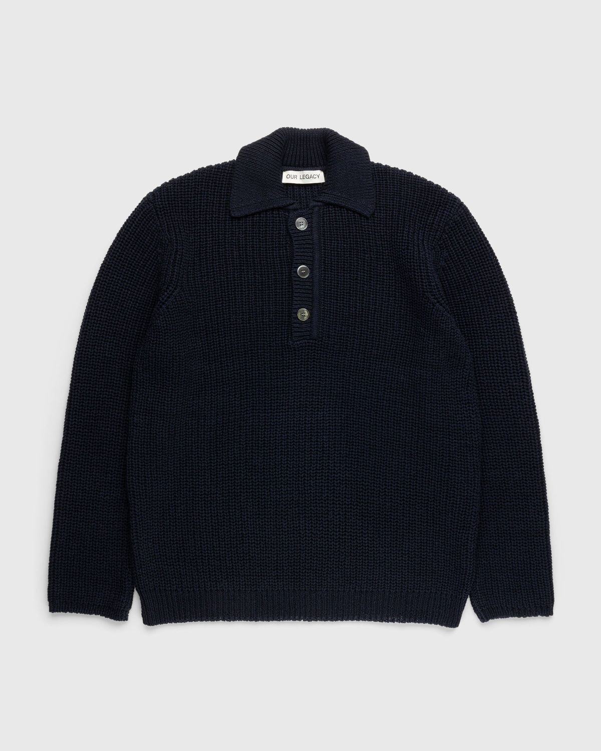 Putting a spin on a classic knitwear style, this design from Our Legacy comes with an oversized fit for optimum comfort. Crafted from an Italian heavy cotton ribbed knit, the natural characteristics of the yarn mean that the shape of the jumper will adjust to the wearer over time. The polo collar features three mother-of-pearl buttons and a peaked, knit collar. Size & Fit Oversized fit. Product Details 100% cotton. Mother of pearl buttons.