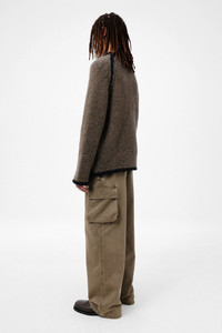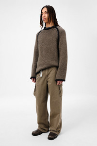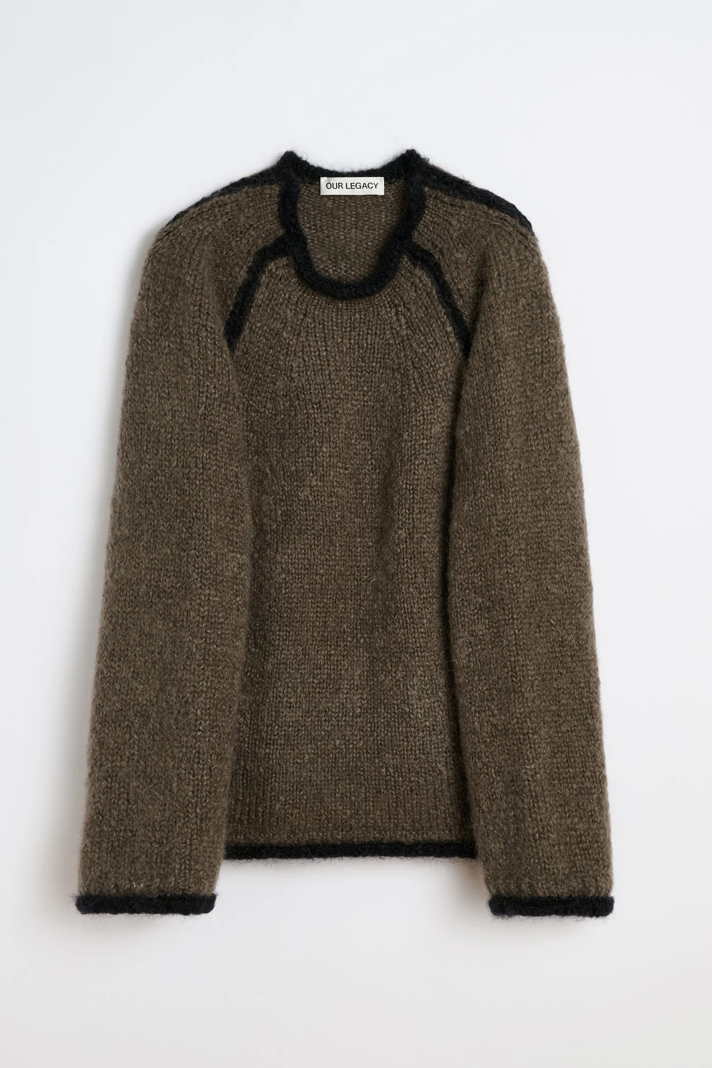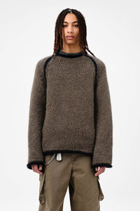 Details · Italian yarn · 59% Mohair 41% Wool · Mock neckline · Rolling collar, cuffs and hem · Raglan shoulders · Contrast knit details · Reverse stitch at side seam · Relaxed, straight fit · M4253RS Description Our Rider Roundneck in Steel Mohair. Produced in Italian mohair and wool yarn, the men's Rider Roundneck has a relaxed fit and features a mock neckline, rolling collar, cuffs and hem, raglan shoulders with contrast knit details, reverse stitch at side seam, and a regular, straight fit. This garment is manufactured using a carefully sourced yarn. The natural characteristics of the yarn, combined with the construction of the knit allows the garment to expand when worn. The garment shall be shaped by its wearer and naturally distress over time to finish the design process. To help keep the integrity of the garment please store folded.
