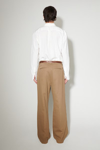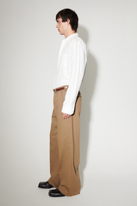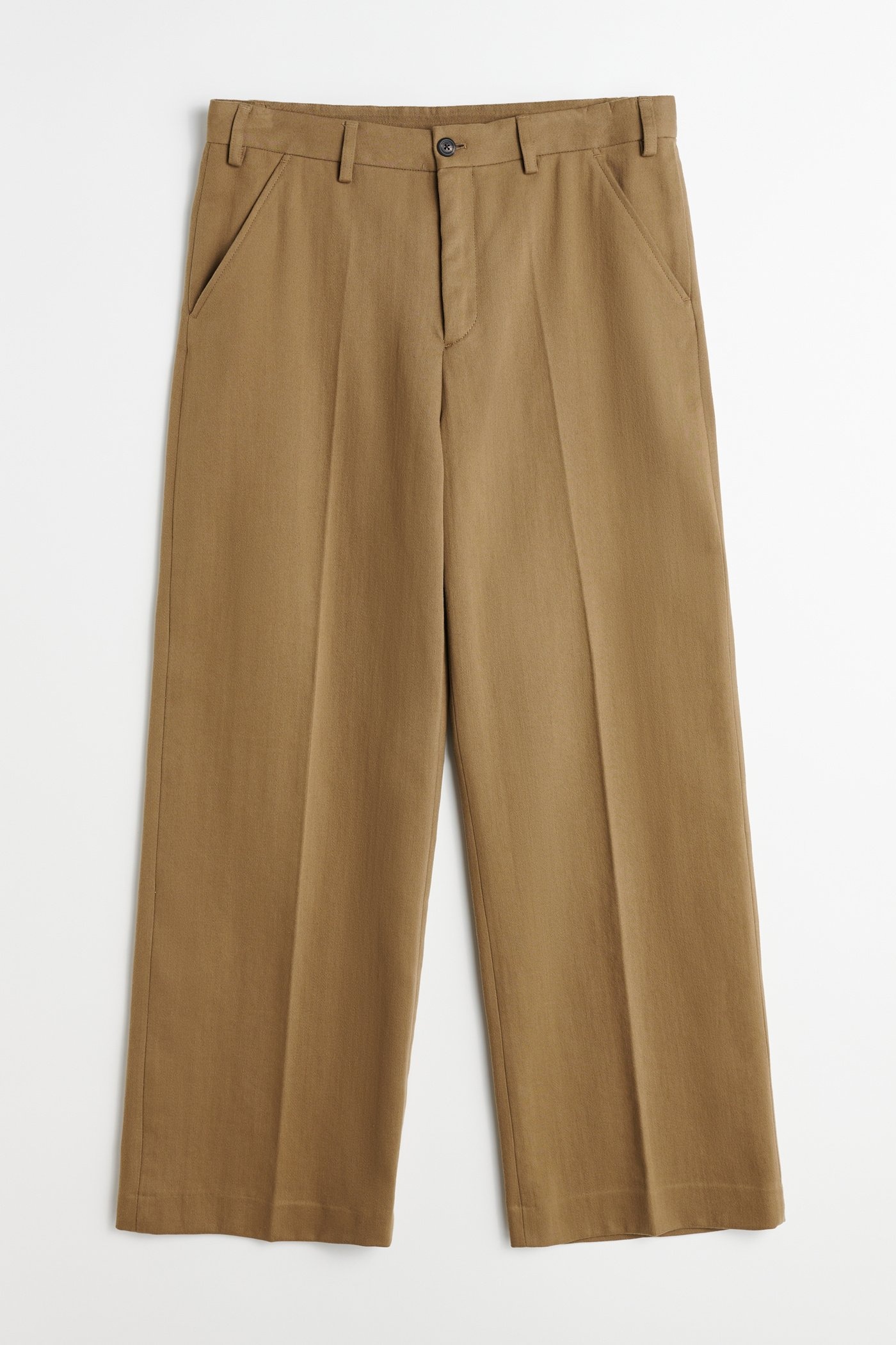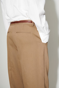 Details · Italian fabric · 100% Cotton · Flat front · Welt back pockets · YKK zip fly · Elasticated waistband · Horn buttons · Pressed creases · Wide leg · M2244SCO Description Our Sailor Trouser in Olive Broken Sateen. Produced in an Italian cotton broken sateen fabric, the wide legged mens Sailor Trouser has a wide, flat front fit and features pressed creases, an elasticated waistband, horn buttons, a zip fly and welted back pockets.