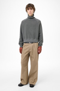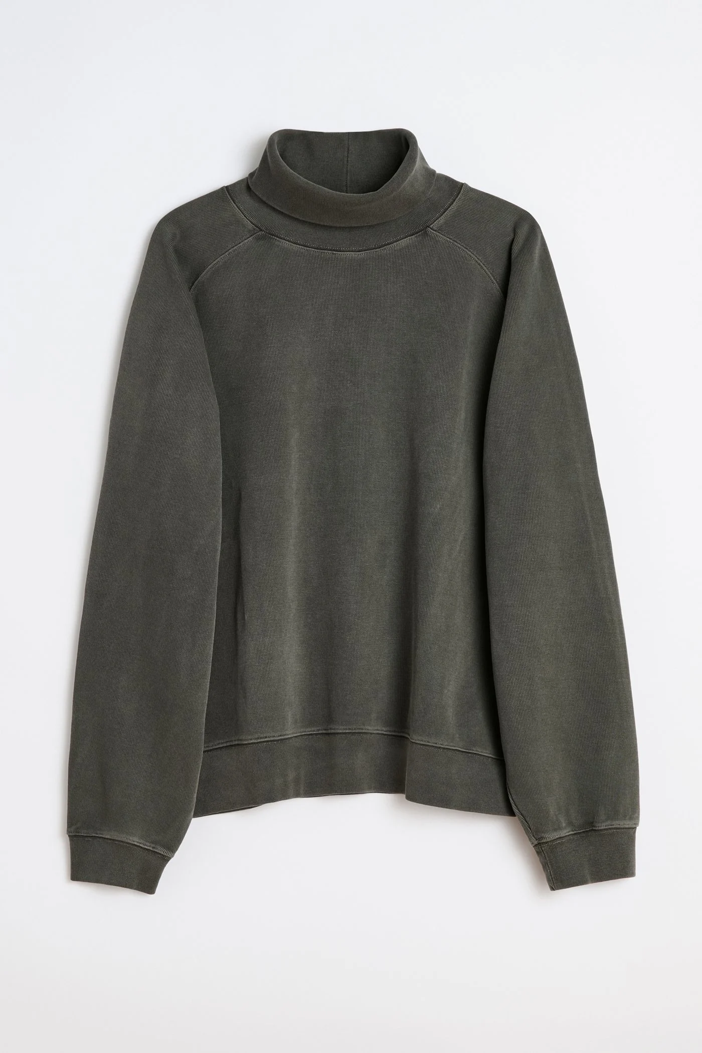 Details · Portuguese fabric · 100% Organic Cotton · Raglan shoulders · Athletic rib construction · High funnel neck collar · Hammer shoulder shape · Boxy, slightly cropped fit · M4256SW Description Our Scholar Rollneck in Worn Black Athletic Rib. Produced in organic cotton, the men's Scholar Rollneck has a round, slightly cropped fit taken from our sweatshirt shape and features a high funnel collar that can be worn up or folded and distinctive hammer shoulder construction that is atypical for jersey sweats.