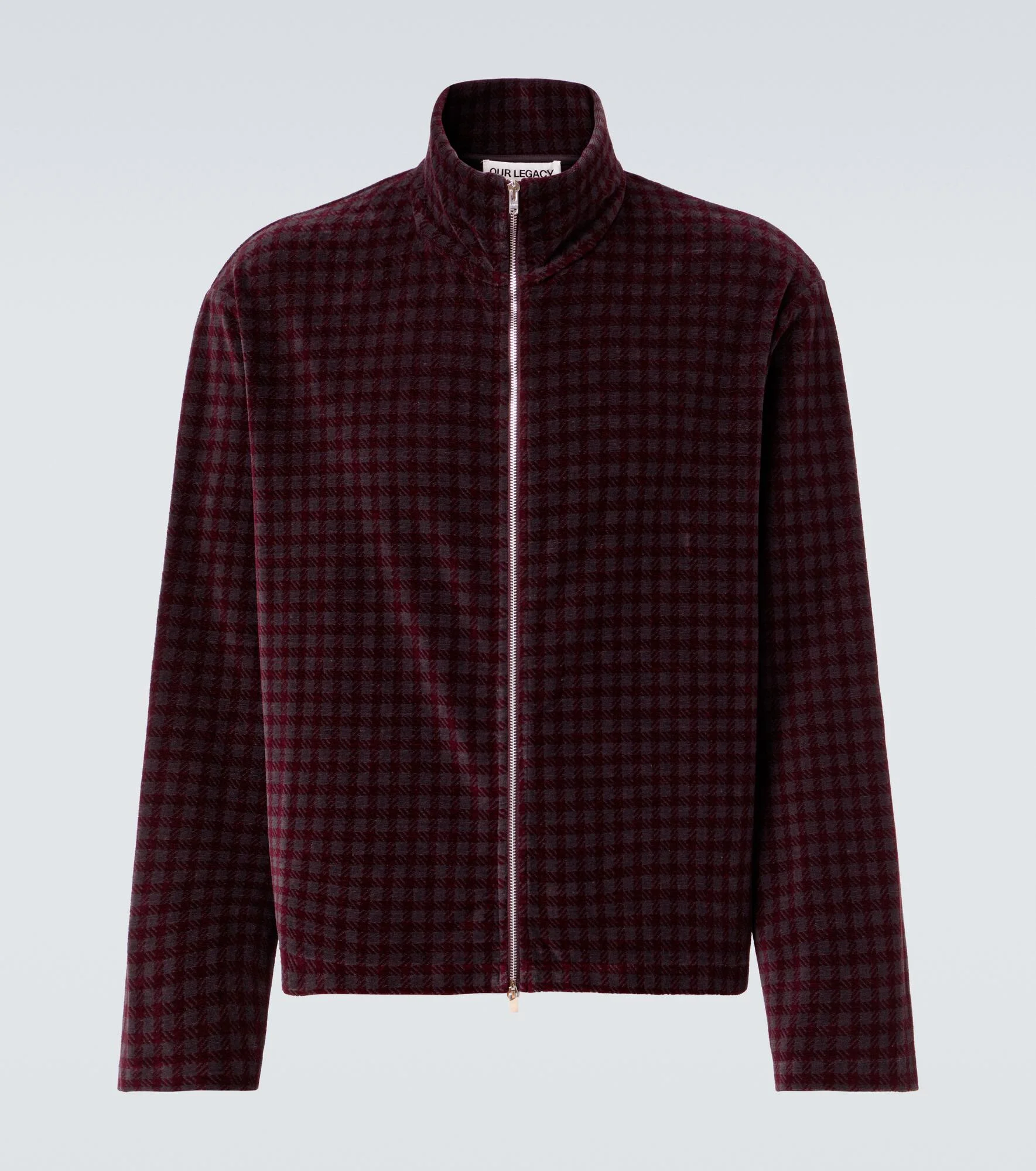Our Legacy has achieved cult status for its Scandinavian-cool take on timeless silhouettes and custom-developed fabrics. The Shrunken jacket is made from plush cotton-blend velour and finished with a high neckline and an all-over check print. Product Details - Material: 74% cotton, 18% polyester, 7% polyamide, 1% elastane - Care instructions: machine wash at 30 degrees - Made in Portugal - Color: burgundy - Designer color name: Merlot Houndini Check Velour - Item color: burgundy, gray - Collar: band - Sleeves: long-sleeved - Closure: zipped front - Item number: P01138665 Size & Fit - True to size - Designed for a loose fit - Slightly stretchy fabric - Slightly cropped - The model in the picture is 185cm-6'1" and wearing a size IT 50