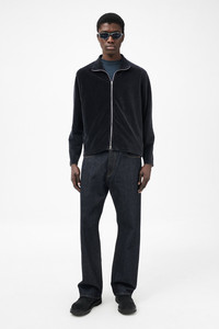 Details · Portuguese fabric · 74% Organic Cotton 18% Polyester · 7% Polyamide 1% Elastane · Soft striped velour · Lampo two way zip · Funnel neck collar · Flatlock seams · Straight hem · Short boxy fit · M4243SPS Description Our Shrunken Fullzip Polo in Phantom Stripe Velour. Produced in a soft textured Portuguese cotton blend velour fabric, the mens striped Shrunken Fullzip Polo has a regular, short boxy fit and features a Lampo two way zip, long sleeves and a straight hem.