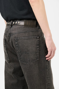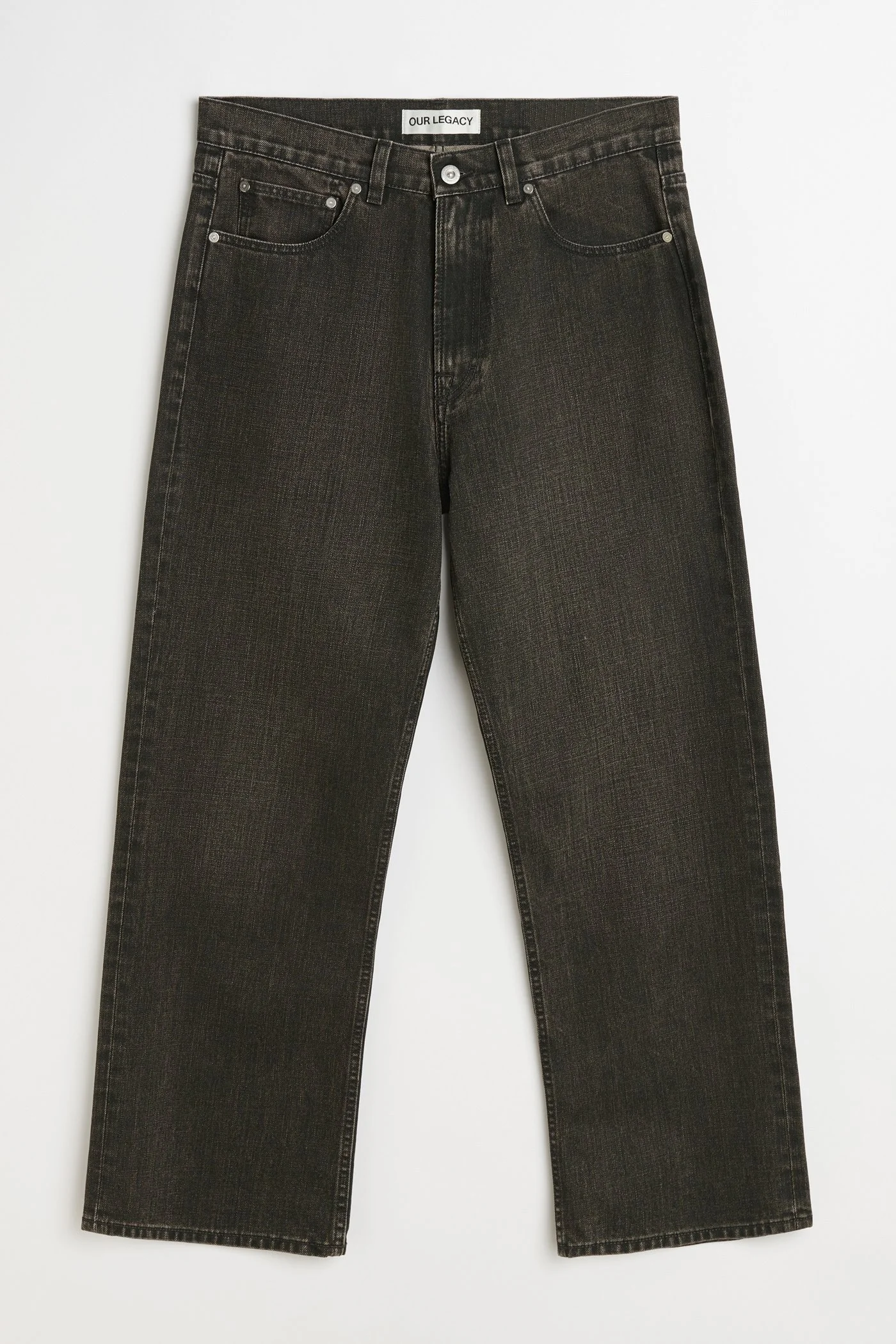 Details · Japanese denim · 100% Cotton · Pigment coated · Washed finish · Relaxed fit · Wide straight leg · YKK zip fly · Metal rivets · OUR LEGACY embossed patch · Five pockets · Reinforced back pockets · Pigment dyed · M2255TBC Description Our Third Cut Jeans in Black Coated Wash. Produced in a washed Japanese pigment coated denim, the mens Third Cut jeans have a relaxed, wide legged fit and feature a YKK zip fly, metal rivets and reinforced back pockets. This garment is manufactured using carefully sourced material with a unique treatment process that will give each garment an individual shade and appearance. This technique could result in some color bleed onto lighter garments or surfaces. The garment shall be shaped by its wearer and naturally distress over time to finish the design process.