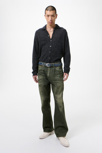 Details · Italian fabric · 100% Cotton · Trompe l'oeil denim print · YKK zip fly · Metal rivets · Our Legacy rubber patch · Five pockets · Reinforced back pockets · Relaxed fit · Wide straight leg · M2265TD Description Our Third Cut in Digital Black Aurora Print. Produced in Italian cotton fabric with a trompe l'oeil denim print, the men's Third Cut has a relaxed fit with wide straight legs and features a YKK zip fly, metal rivets, five pockets with reinforced back pockets, and the Our Legacy rubber patch. This garment is manufactured from carefully sourced denim fabric. The unique digital print draws inspiration from a collection of vintage denim designs, that has been photographed and digitally manipulated as an interpretation of vintage denim. The garment shall be shaped by its wearer and naturally distress over time to finish the design process.