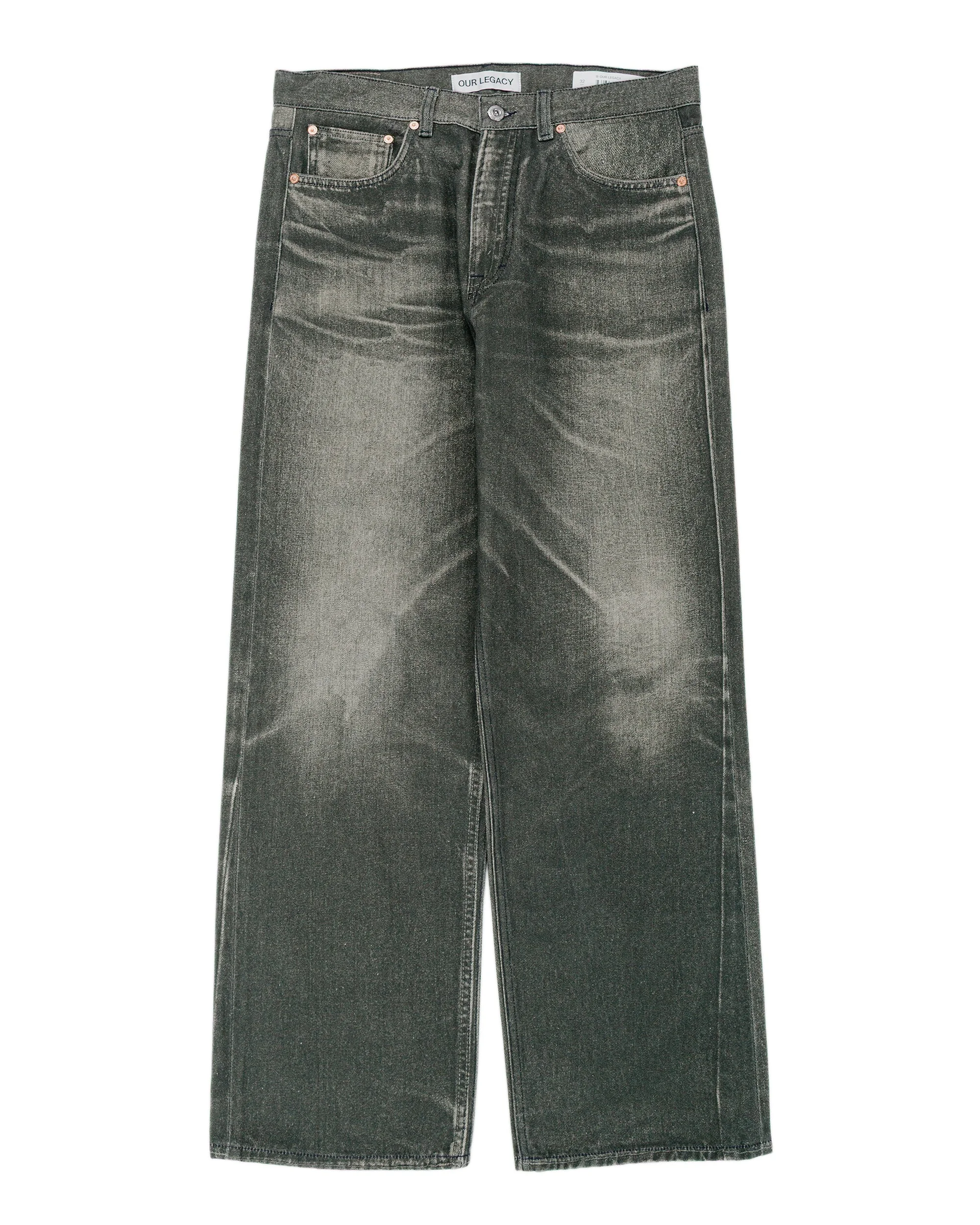 Mike Fong - 'We gotta do the digital denim print'. So we did. For further clarification, the title of the product is pretty accurate of its description. DETAILS - Italian denim with trompe l'oeil vintage denim print - Five pocket with reinforced back pockets - Button waist closure & YKK zip fly - Metal rivets - OUR LEGACY rubber patch - 100% cotton - Made in Portugal - Model is 6'1” (186cm), 160lbs (73kg) and wearing 32