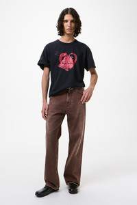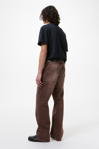 Details · Turkish denim · 100% Cotton · Natural pigment dyed · YKK zip fly · Metal rivets · Our Legacy rubber patch · Five pockets · Reinforced back pockets · Relaxed fit · Wide straight leg · M2265TC Description Our Third Cut in Overdyed Choco Melon. Produced in Turkish denim, the men's Third Cut has a relaxed fit with a wide straight leg and features natural pigment dyeing, a YKK zip fly, metal rivets, five pockets with reinforced back pockets, and the Our Legacy rubber patch. This garment is manufactured using carefully sourced material with a unique treatment process that will give each garment an individual shade and appearance. The treatment uses a natural pigment derived from minerals and earth-based elements, which creates subtle variations in tone. This technique could result in some color bleed onto lighter garments or surfaces. The garment shall be shaped by its wearer and naturally distress over time to finish the design process.