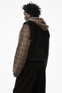 Details · Italian fabric · 100% Cotton · Heavy corduroy · Faux shearling lining · Two-way Lampo zip · Sleeveless · Single welt breast pocket · Boxy, cropped fit · M4251TP Description Our Top Vest in Profound Brown Mammoth Cord. Produced in Italian heavy corduroy fabric, the men's Top Vest has a boxy, cropped fit and features faux shearling lining, a two-way Lampo zip, a single welt breast pocket and a sleeveless construction.