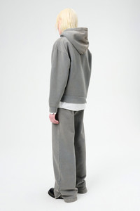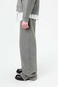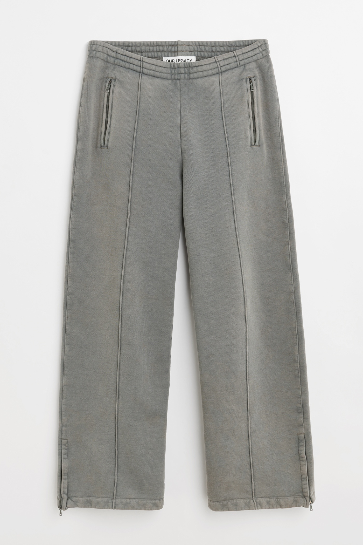 Details · Portuguese heavyweight jersey · 100% Organic Cotton · Piece dyed · Sun faded wash · Drawstring waist · Two side pockets · Stitched crease · Piece dyed · Vented side seam with zip closure · Relaxed, wide legged fit · M4246TOD Description Our Track Pants in Old Dye Hefty Fleece. Produced in a heavy weight Portuguese organic cotton jersey, with a sun faded wash, the mens Track Pants have a relaxed, wide legged fit and feature a drawstring waist, two side pockets, stitched front creases and vented side seams with zip closure. This garment is manufactured using carefully sourced material with a unique treatment process that will give each garment an individual shade and appearance. This technique could result in some color bleed onto lighter garments or surfaces. The garment shall be shaped by its wearer and naturally distress over time to finish the design process.