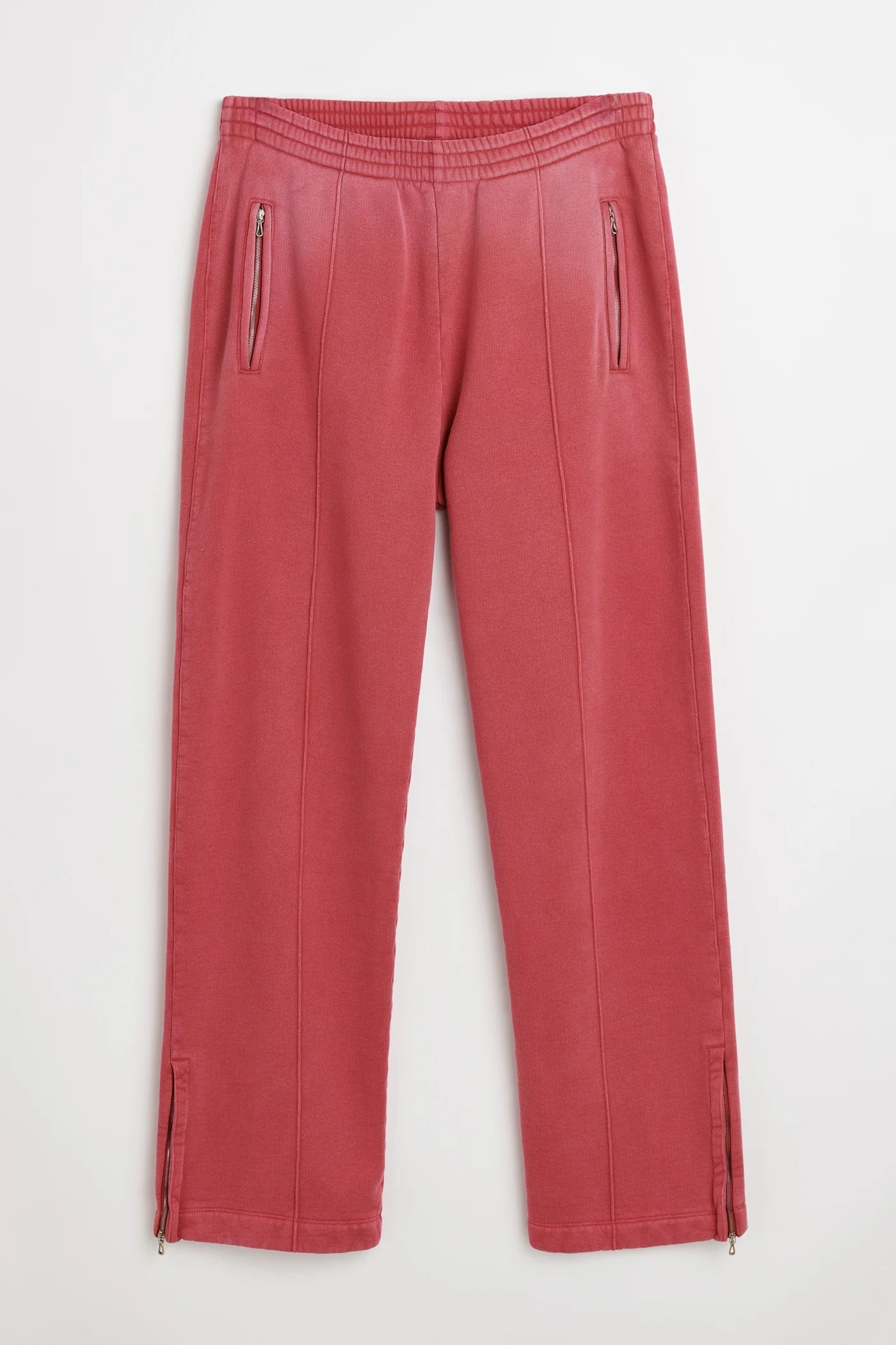 Details · Portuguese heavyweight jersey · 100% Organic Cotton · Piece dyed · Sun faded wash · Drawstring waist · Two side pockets · Stitched crease · Vented side seam with zip closure · Relaxed, wide legged fit · M2256TRS Description Our Track Pants in Old Dye Hefty Fleece. Produced in a heavy weight Portuguese organic cotton jersey, with a sun faded wash, the mens Track Pants have a relaxed, wide legged fit and feature a drawstring waist, two side pockets, stitched front creases and vented side seams with zip closure. This garment is manufactured using carefully sourced material with a unique treatment process that will give each garment an individual shade and appearance. This technique could result in some color bleed onto lighter garments or surfaces. The garment shall be shaped by its wearer and naturally distress over time to finish the design process.