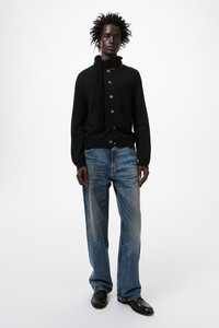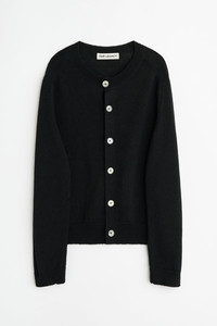 Details · Italian yarn · 45% Linen 40% Merino Wool RWS 15% Cotton · Plain knit · Raglan sleeves · Reverse stitch details · Integrally knitted buttonholes · Mother of pearl buttons · Relaxed, true to size fit · M2263TBC Description Our True Cardigan in Black Coarse Linen Wool. Knitted from Italian yarn combining linen, merino wool and cotton, this cardigan has a relaxed, true to size fit and features raglan sleeves, reverse stitch details, integrally knitted buttonholes for a clean finish, and mother of pearl buttons, with rib finishes keeping the style neat. This garment is manufactured using a carefully sourced yarn. The natural characteristics of the yarn, combined with the construction of the knit allows the garment to expand when worn. The garment shall be shaped by its wearer and naturally distress over time to finish the design process. To help keep the integrity of the garment please store the garment folded.