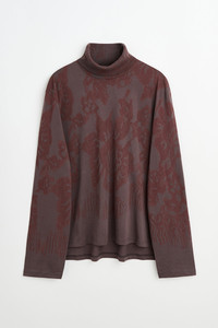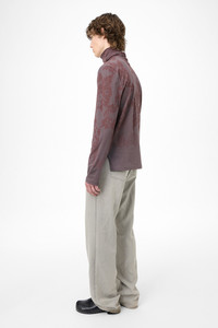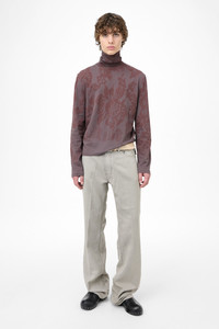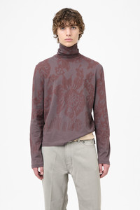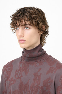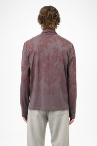 Details · Portuguese fabric · 100% Cotton · Garment treated · Lace stencil motif · Ribbed roll neck collar · Slit at sides · Elongated back · Regular fit · M4256TR Description Our Tutor Rollneck in Tasty Raisin Lace Stencil. Produced in a Portuguese cotton fabric, the men's Tutor Rollneck has a regular fit with a classic funnel style and features a ribbed roll neck collar, an elongated back, and slits at the sides. This garment is manufactured using carefully sourced material with a unique treatment process that will give each garment an individual shade and appearance. This technique could result in some color bleed onto lighter garments or surfaces. The garment shall be shaped by its wearer and naturally distress over time to finish the design process.