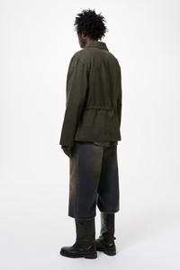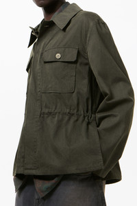Details · Japanese fabric · 100% Cotton · Pigment coated finish with muted sheen · Hidden button placket · Two chest pockets · Corozo buttons · Internal waist drawstring channel · Side seam vents for easy access to trouser pockets · M2261UAM Description Our Unity Jacket in Antique Mudd Coated Sateen. Produced in a Japanese cotton sateen with a pigment coated finish that lends a muted sheen. The coating is designed to wash out over time, gradually revealing the natural cotton beneath and creating an authentic, weathered look. The Unity Jacket is a refined take on the M65 made smaller to sit between a light jacket and an overshirt. It features a hidden button placket, two chest pockets with no lower patch pockets, an internal waist drawstring channel, and side seam vents for easy access to trouser pockets.
