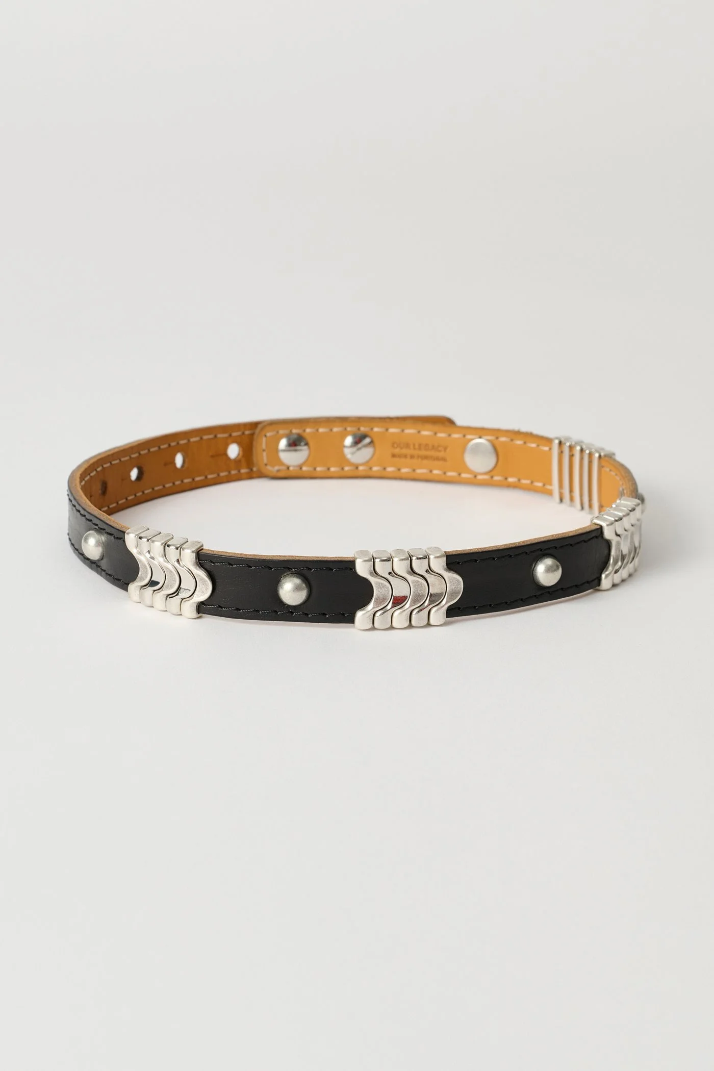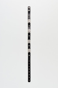 Details · American Chromexcel leather · Interlocking metal wave ornaments · Stud closure · Dust bag · A4258WBC Description Our Wave Choker in Black Chromexcel Leather. Crafted from premium American Chromexcel leather, this statement choker features distinctive interlocking metal wave ornaments and a secure stud closure. Choker measures 45 cm from end to end. The circumference can be adjusted from 42.5 cm to 30.5 cm. This product is crafted from carefully sourced leather. As a natural material, leather carries subtle traces of the animal's life. These natural imperfections bring a unique character to each product, expressing an original and authentic look. The product shall be shaped by its wearer and naturally distress over time to complete the design process.