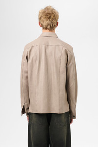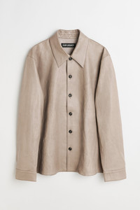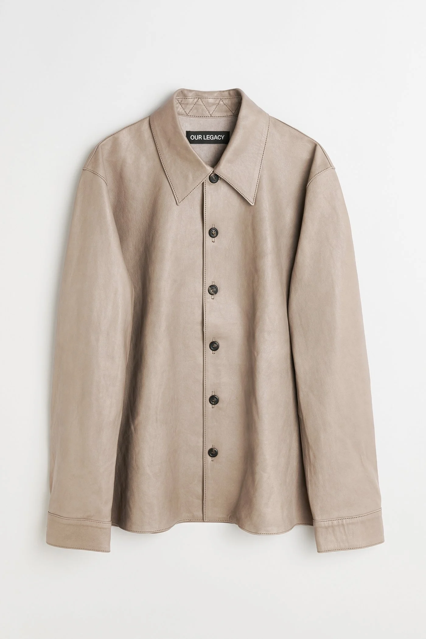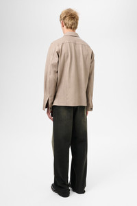 Details · Italian lamb leather · Horn buttons · Vented side seams · Bartack details · Zig zag stitch on collar stand · Relaxed, boxy fit · M2259W7 Description Our Welding Shirt in 70S Grey Velvet Lamb skin. Produced in an Italian lambs leather, the mens Welding Shirt has a relaxed, boxy fit and features horn buttons, vented side seams and zig zag stitch detailing under the collar stand. This product is crafted from carefully sourced leather. As a natural material, leather carries subtle traces of the animal's life. These natural imperfections bring a unique character to each product, expressing an original and authentic look. The product shall be shaped by its wearer and naturally distress over time to complete the design process.