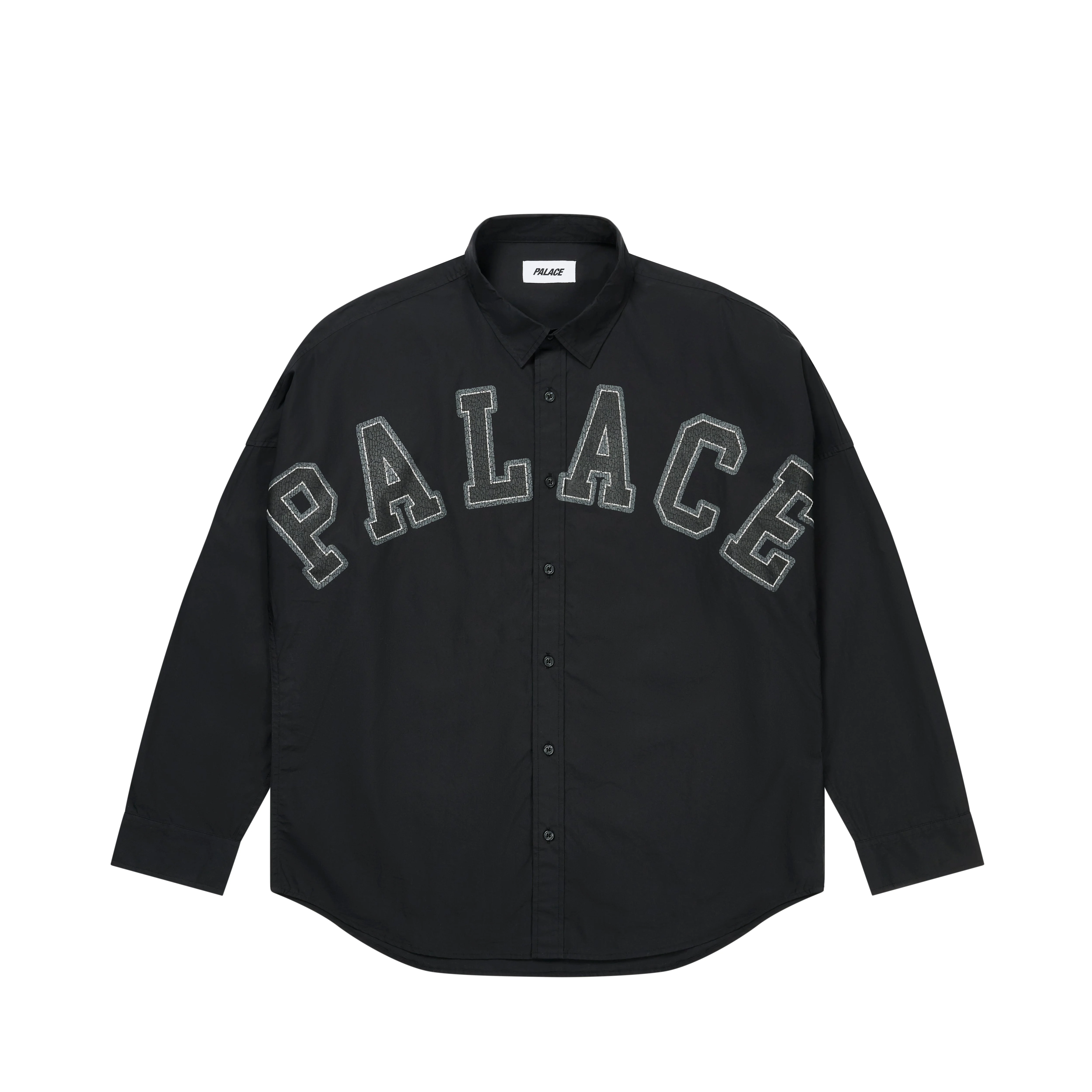 - this is the kinda - shit - your weird uncle - would turn up - to christmas - dinner in TECHNICAL DETAILS - palace branded shirting buttons - crackle screen print on chest - folded palace flag label on side seam - 100% Cotton