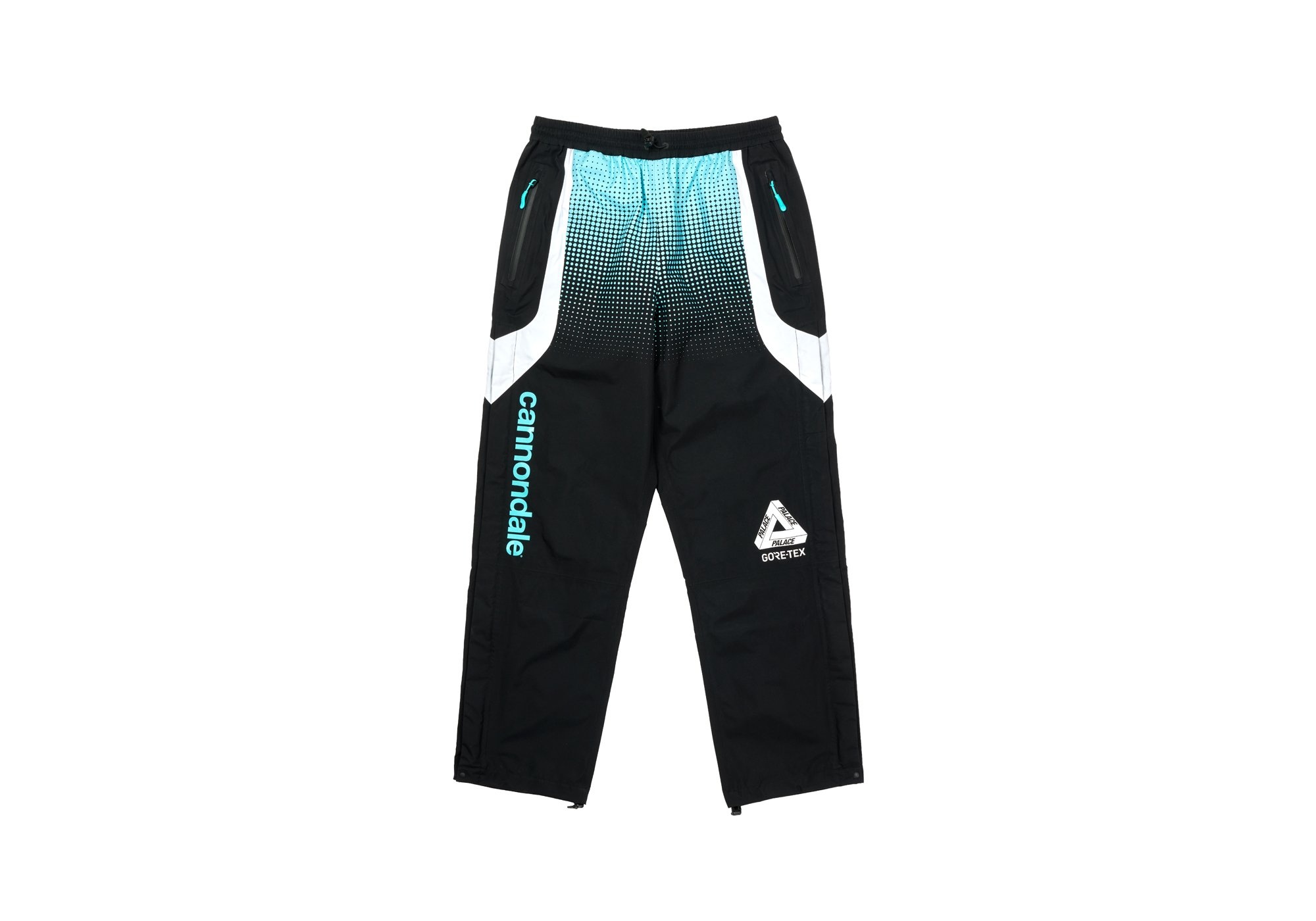 - ME AND LUCIEN - GONNA - LEARN WHEELIES - SWEAR DOWN Technical Details PALACE CANNONDALE MAD BOY GORE-TEX PACLITE PANT BLACK / MINT Details - Gore-Tex paclite fabric - Taped seam construction - Waterproof - YKK zippers - Split panel colour blocking - Cannondale branding - Gore-Tex branding - Palace Tri-Ferg branding - Palace branded zip pulls