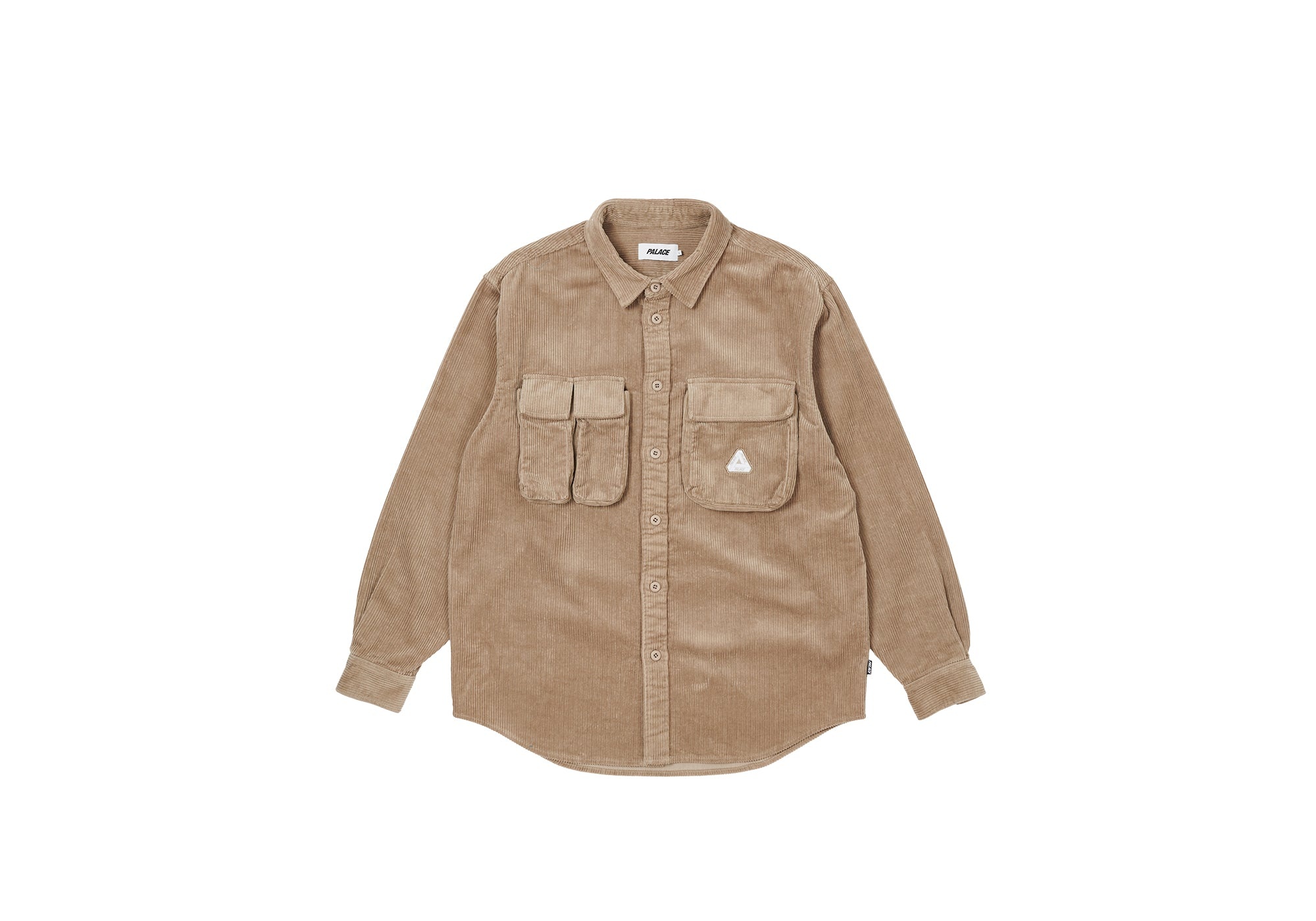 - PALACE - WILL ALWAYS - BE FOR DONS - NOT FOR SIDEMEN Technical Details CARGO CORD SHIRT STONE Details - Corduroy shirt - Three front pockets - Tonal Tri-Ferg label at chest - Flag label at side seam - 100% cotton