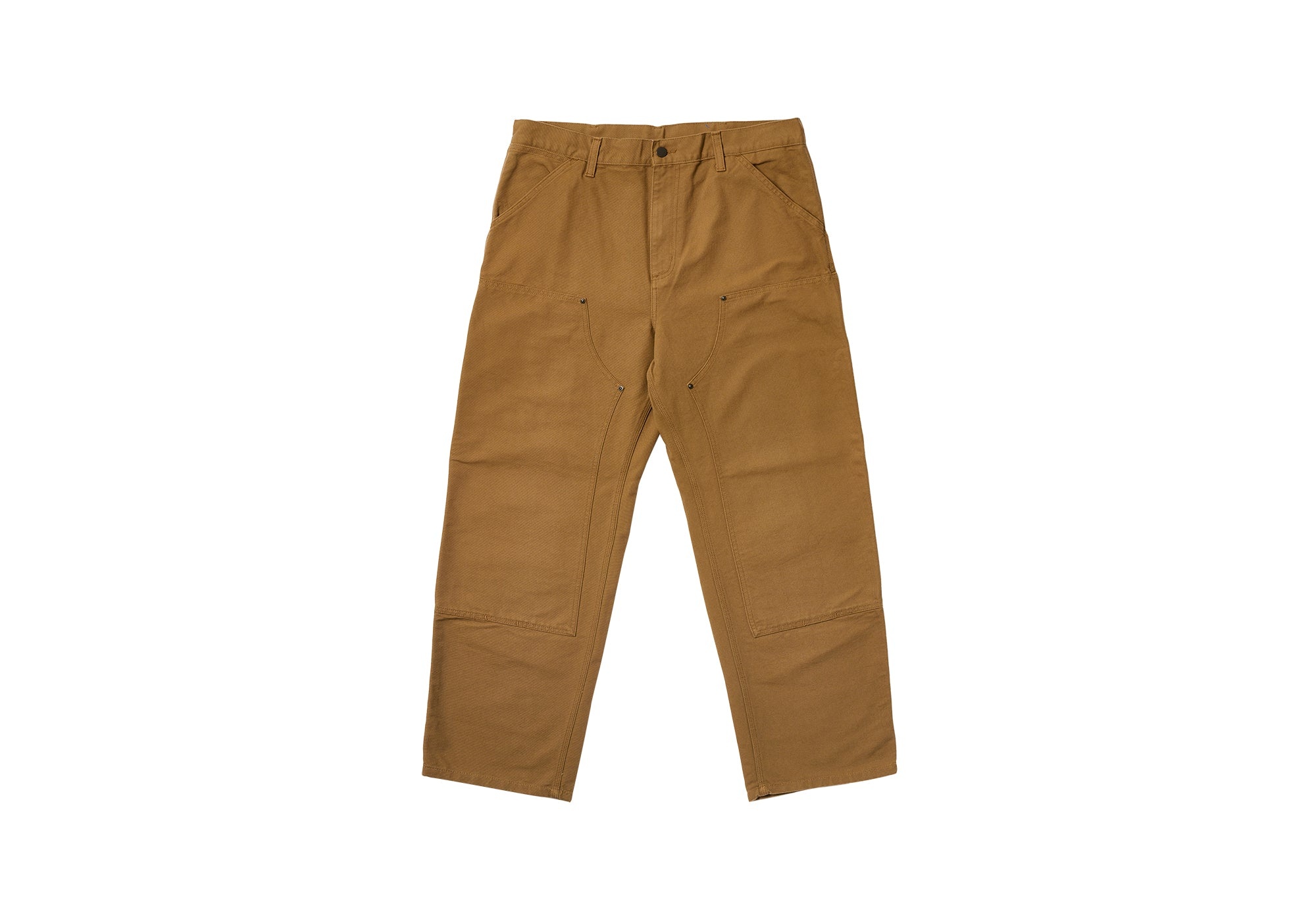 - SUPPOSEDLY - DOUBLE KNEE PANTS - WERE INVENTED - FOR KNEE SLIDE - CELEBRATIONS - WHEN YOU WORK IN A CLOTHING FACTORY - AND MAKE THE BANG BANG - PAIR OF JEANS Technical Details PALACE CARHARTT WIP DOUBLE KNEE PANT HAMILTON BROWN Details - 100% cotton ‘Dearborn’ canvas, 12 oz - Relaxed straight fit, regular waist - Triple-stitched - Bar tack stitching at vital stress points - Zip fly - Palace Carhartt WIP square label