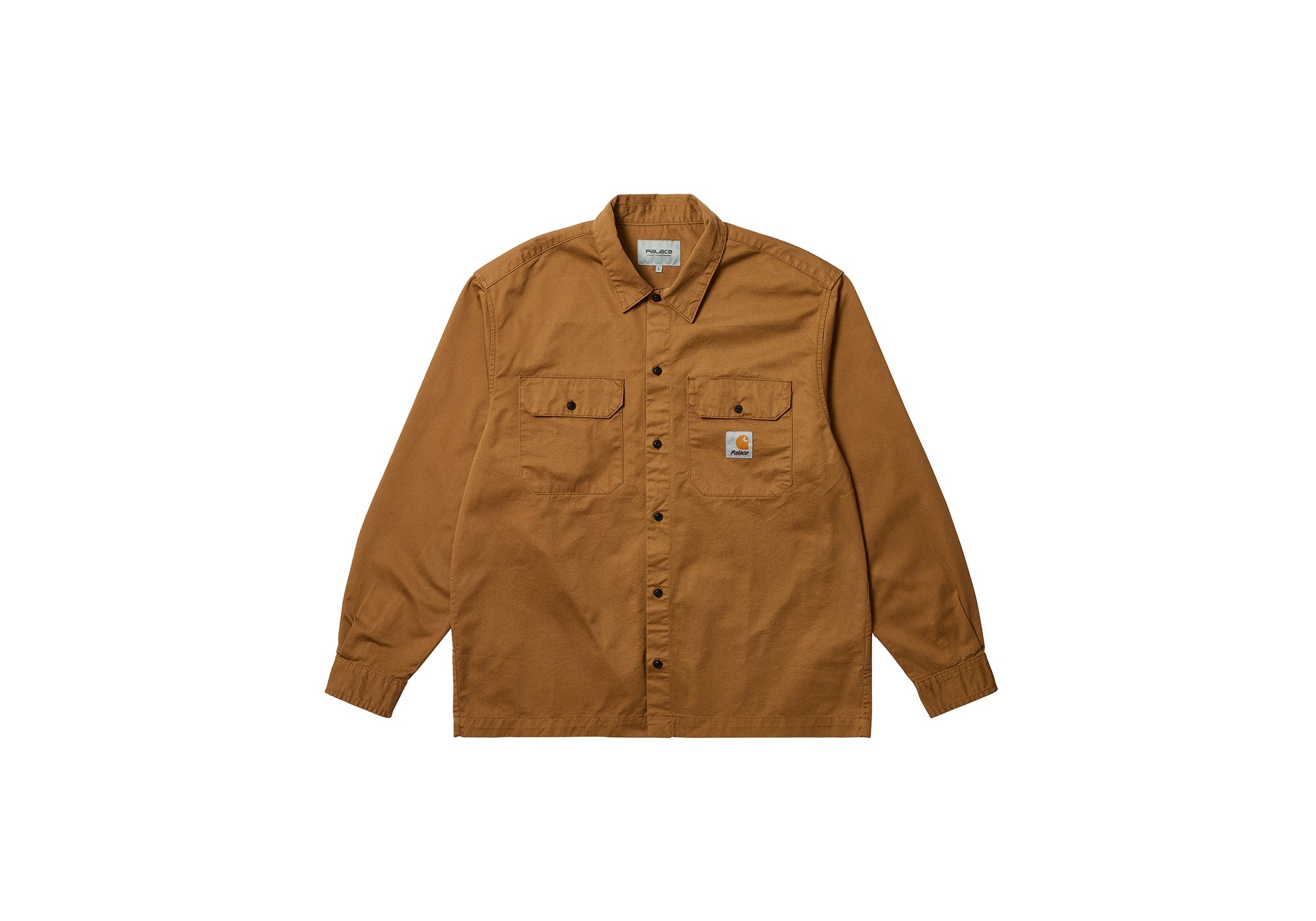 - CAN’T WAIT TO GET OLD - ONLY WEAR BROWN - AND NOT SPEAK TO ANYONE Technical Details PALACE CARHARTT WIP LONGSLEEVE MASTER SHIRT HAMILTON BROWN Details - Regular fit - 100% cotton twill - Two chest pockets with flap and button closure - Palace Carhartt WIP square label - WIP script label